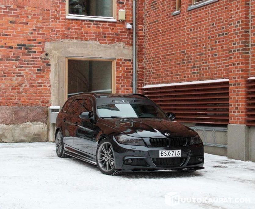 Sisätiloja komistaa siistit mustat sporttinahat. Valotehoa keulalla tuottaa adaptiiviset Xenonit kaukovaloavustimella. Kylmiä talviaamuja varten löytyy lohkolämmitin. Sisätilojen ilmeen viimeistelee avattava panoraamakatto sekä alcantaralla teipatut listat. Auton huoltohistoria on säännöllinen ja vaihteistoöljyjäkin on vaihdettu. Ai niin, ja tämä yksilöhän on äskettäin katsastettu. Poikkeuksellisen näyttävä E91, WAU!