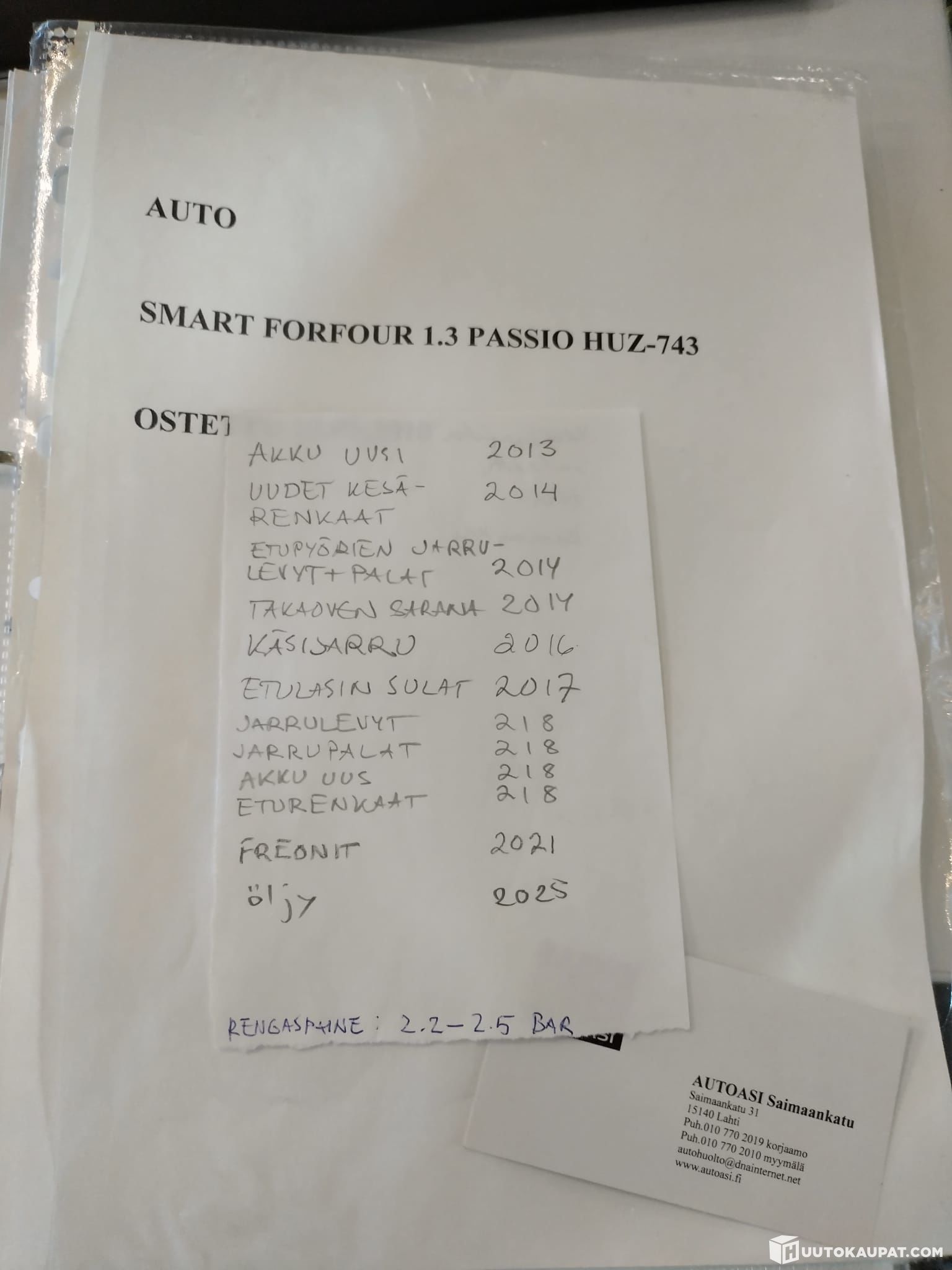 Ennen auton myyntiinlaittoa suoritimme autolle koeajon ja kuntoarvion, joiden aikana teimme autosta seuraavat havainnot: