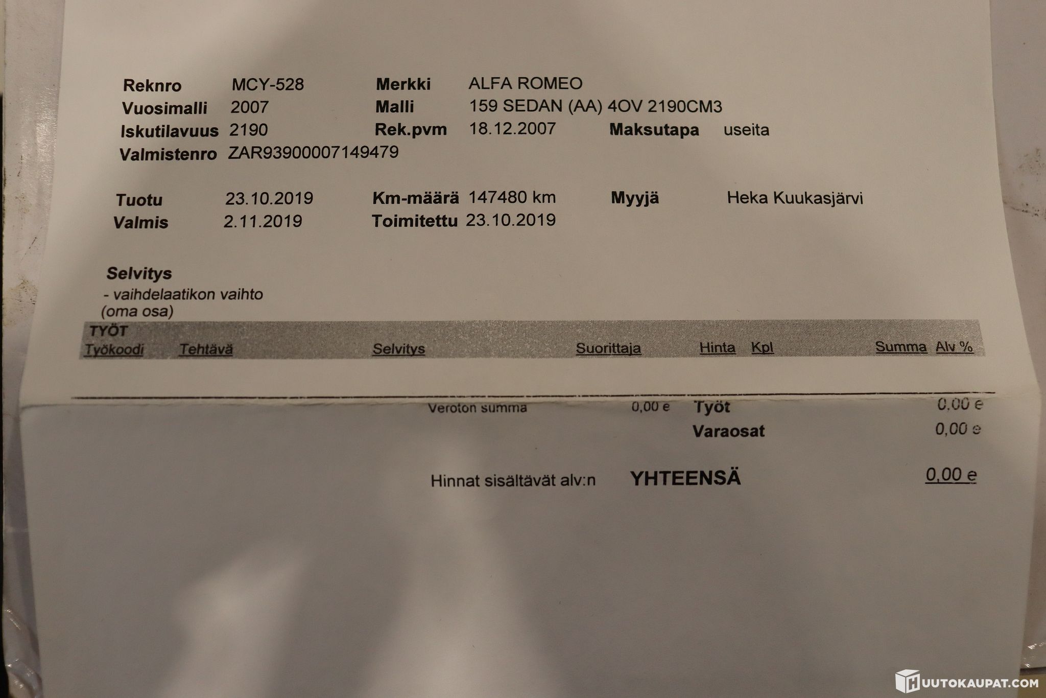 ✔ Vaihteisto vaihdettu 23.10.2019 / 147 480 km