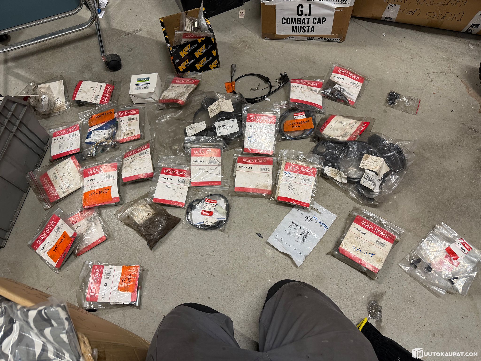 Konkurssipesän saaman tiedon mukaan suljetuissa pusseissa ja laatikoissa olevat osat ovat käyttämättömiä, mutta tätä ei ole tarkastettu konkurssipesän toimesta. Konkurssipesän puolesta muutamaan laatikkoon on tehty pistotarkastus ja näissä laatikoissa vaikutti olevan käyttämättömiä osia. Viimeisenä kuvissa esiintyvä varaosa on käytetty (laatikon kyljessä lukee erikseen).