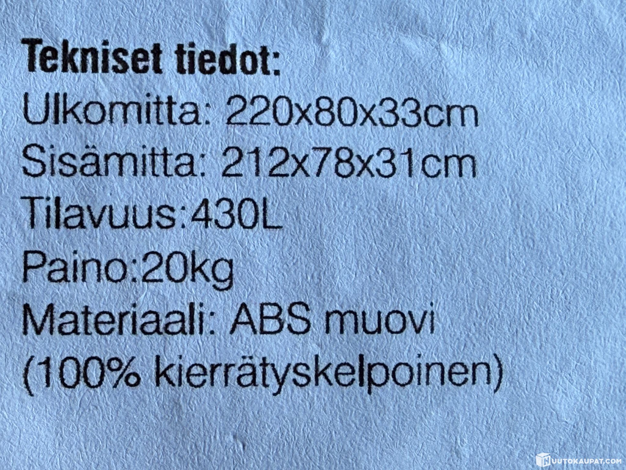 Tämän kohteen myyjä on Huutokaupat.com. Savon Tarviketalo Oy antaa Huutokaupat.comin puolesta kohteesta lisätietoja ja vastaa kohteen luovutuksesta. Kohde tulee aina maksaa Huutokaupat.com-sivustolla olevien verkkomaksupainikkeiden kautta tai Huutokaupat.comin laskulla. Jos kohdetta ei makseta Huutokaupat.comille, Huutokaupat.com ei hyväksy mitään vastuuta kaupasta.
