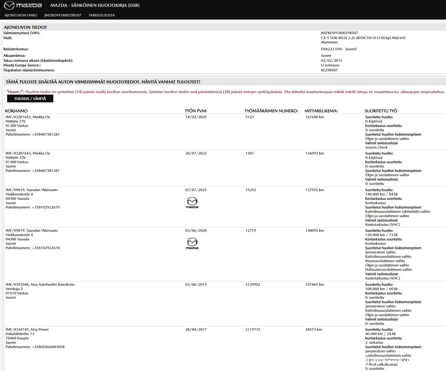 2,2 SKYACTIV-D Touring, Autom. AWD, 175042 km, Korjattavaksi