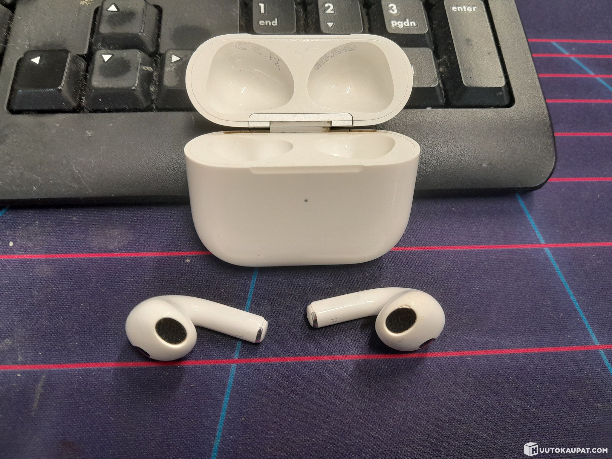 Käytetyt. Mukana napit, latauskotelo ja laturi.