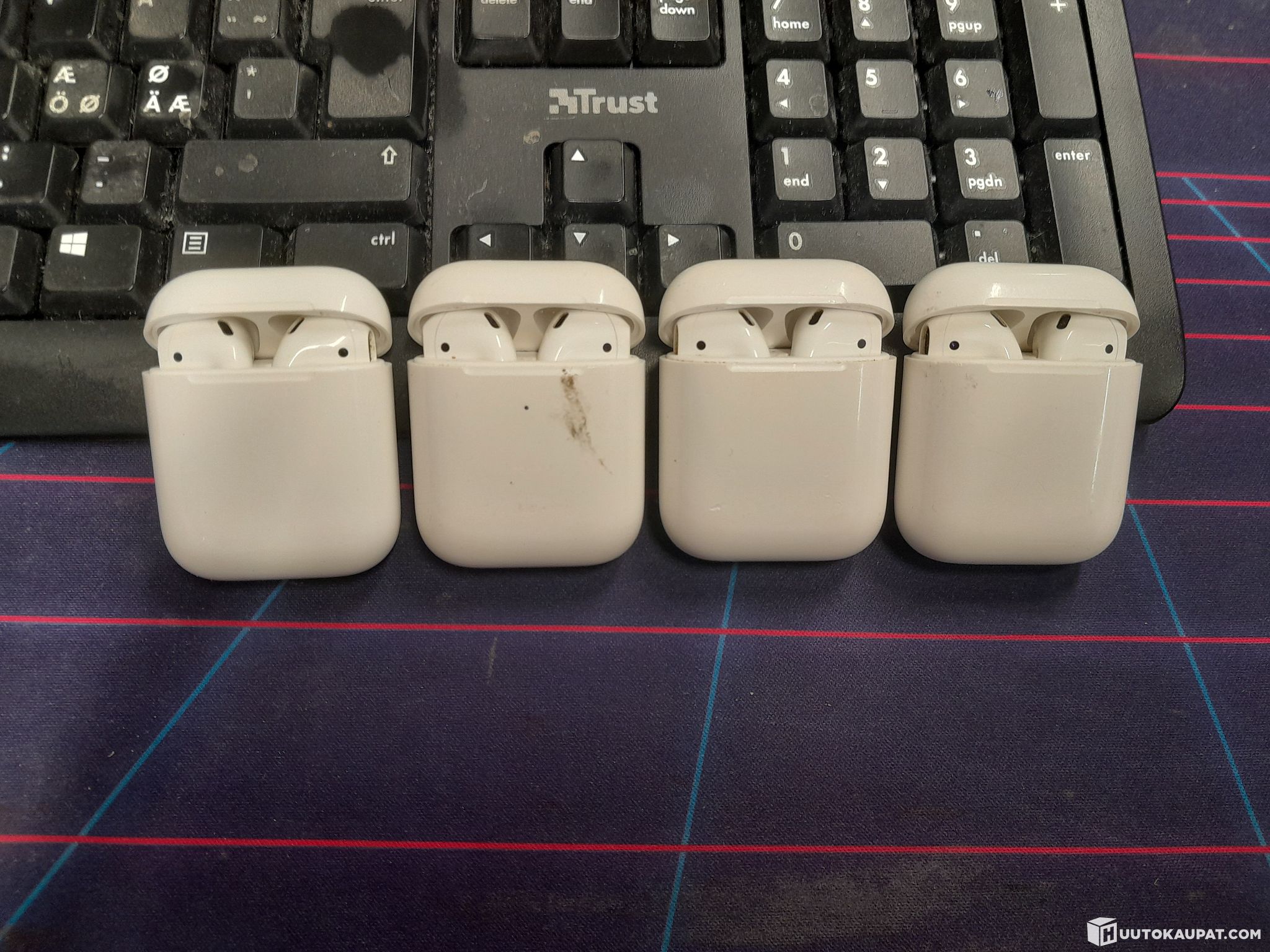 Käytettyjä. Mukana napit, latauskotelot ja laturit.