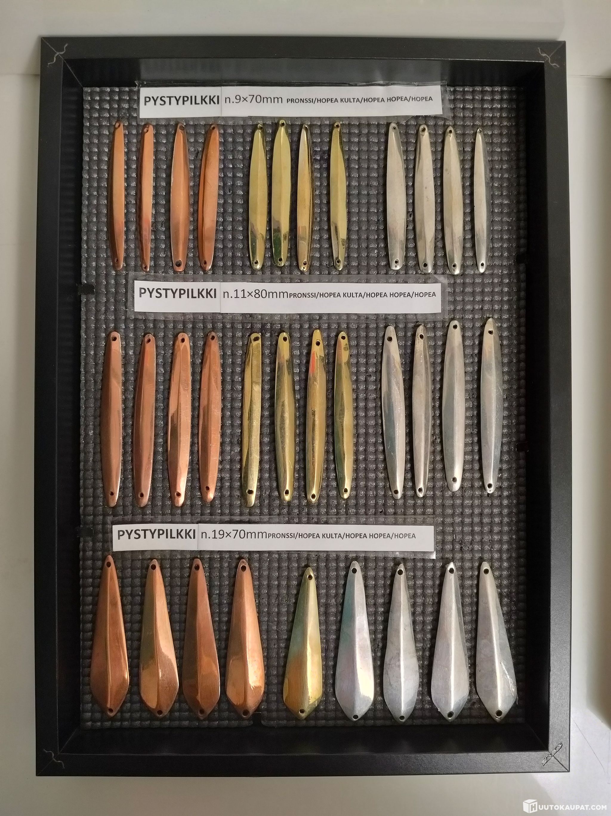 Kaikissa pilkeissä toinen puoli hopea. Näkyvällä puolella eri värivaihtoehtoja (pronssi, kulta ja hopea).