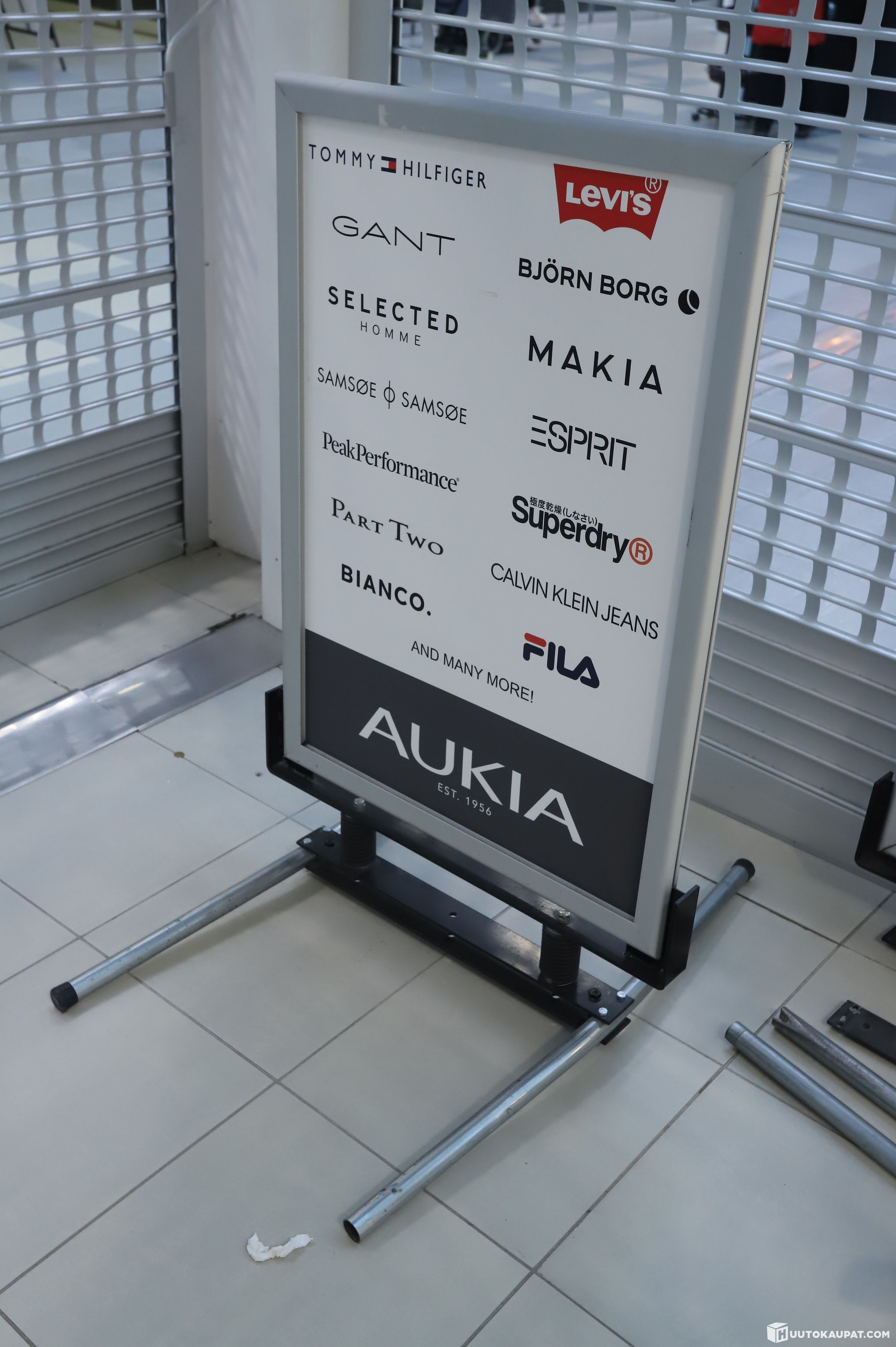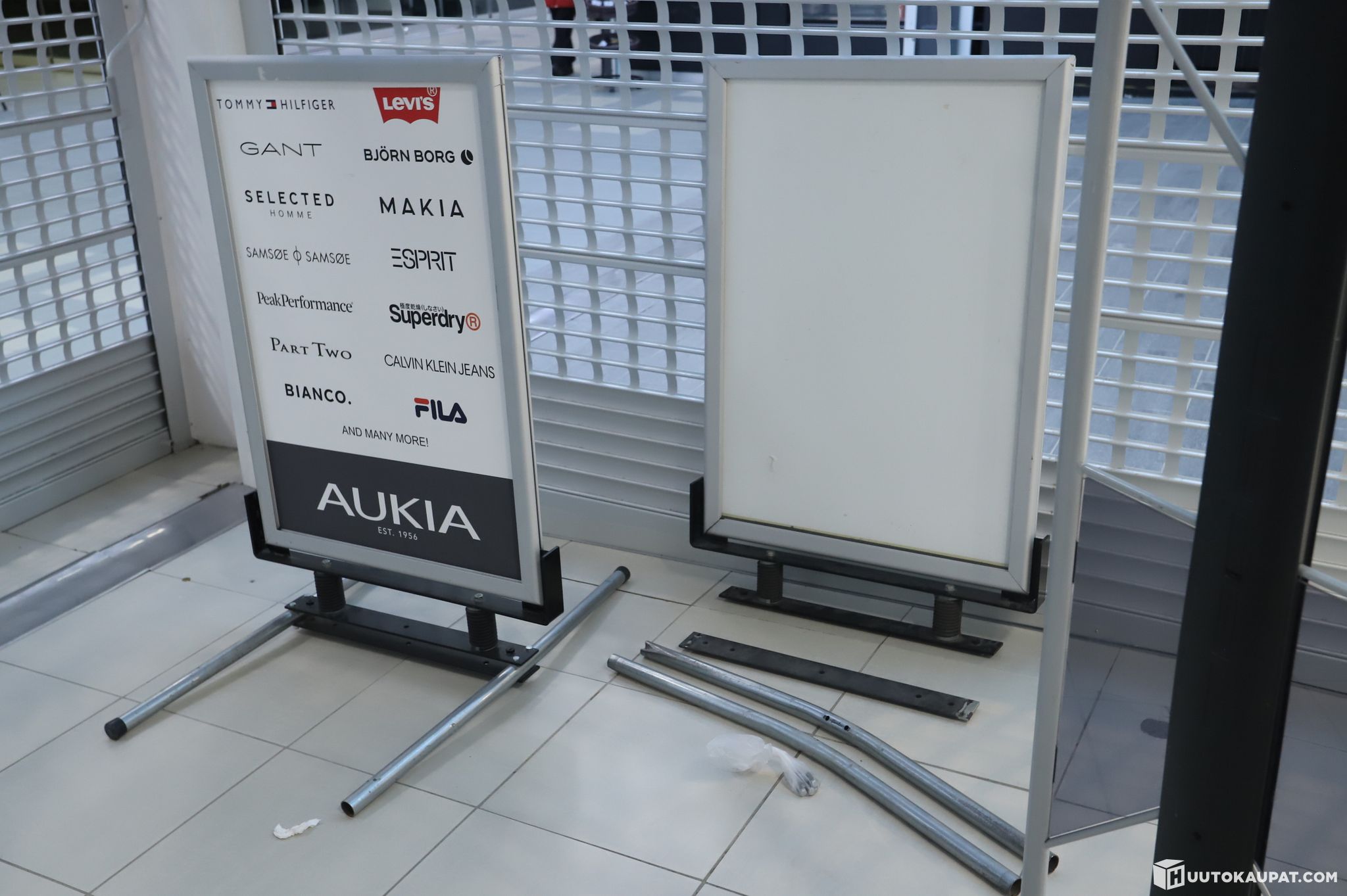 Myymäläkäytössä ollut mainosteline.
