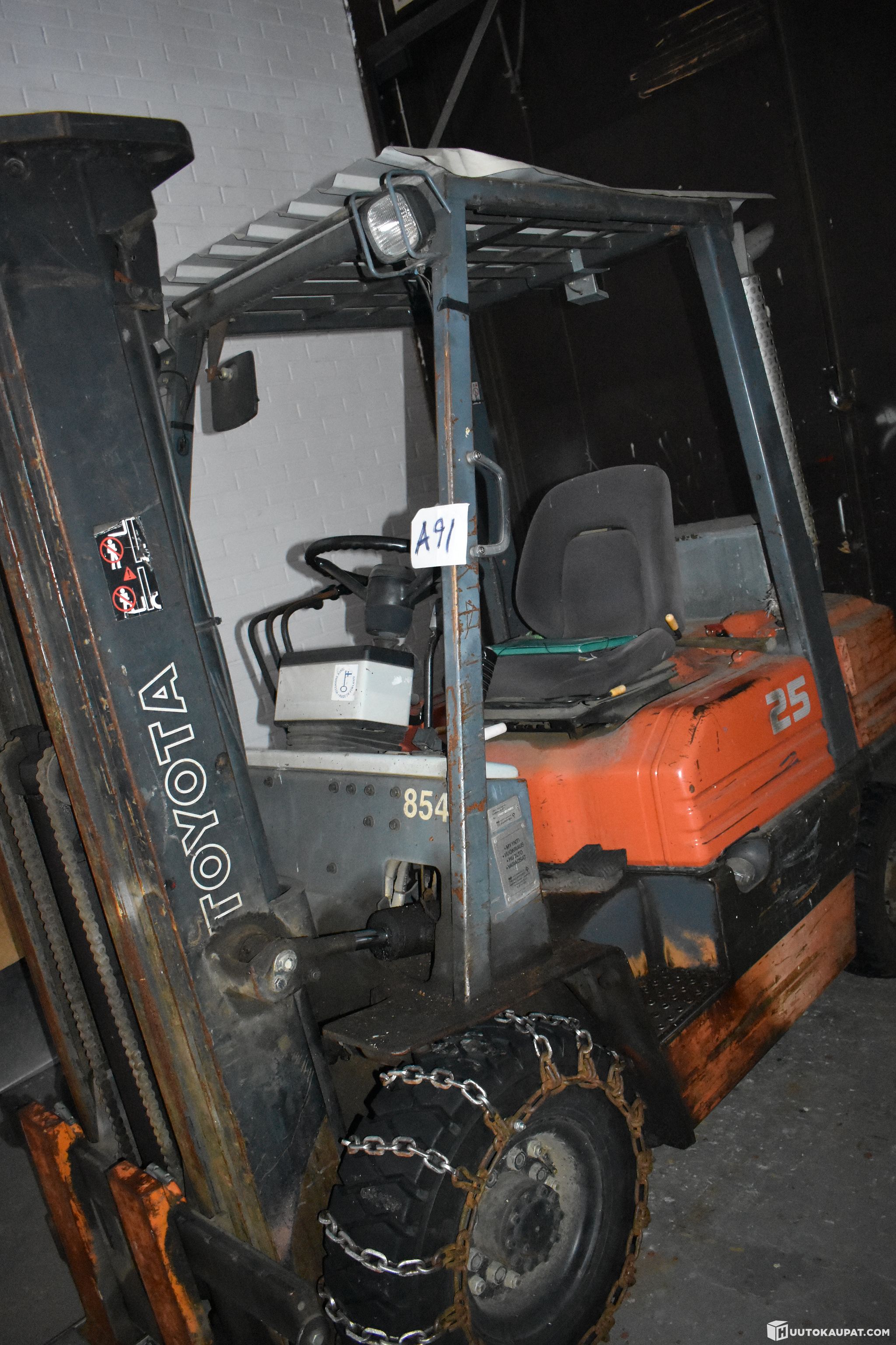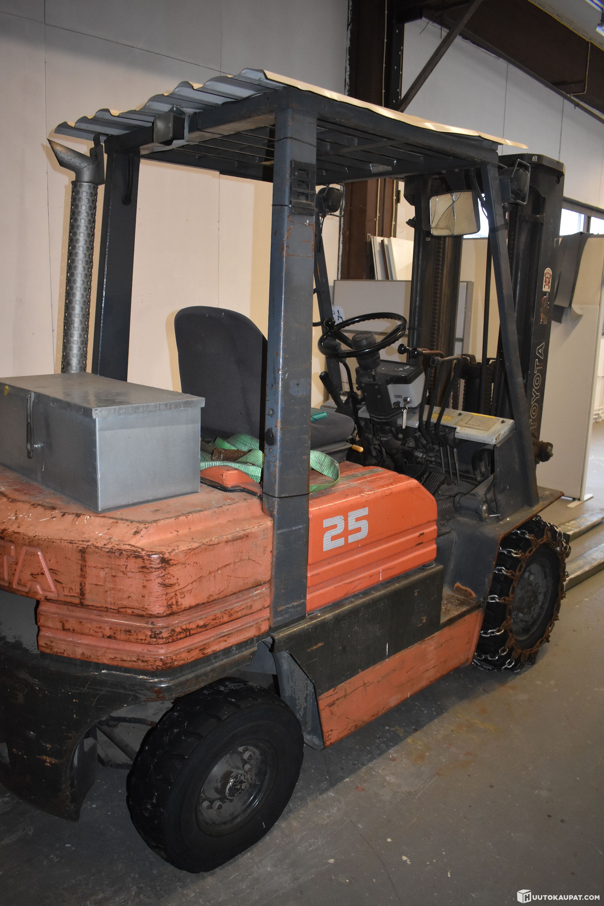 Myynnissä Toyota trukki. Nostokorkeus 4.7m, diesel peli. Kohde käytössä luovutukseen saakka (autellaan muita huutokaupan kohteita asiakkaiden kyytiin).