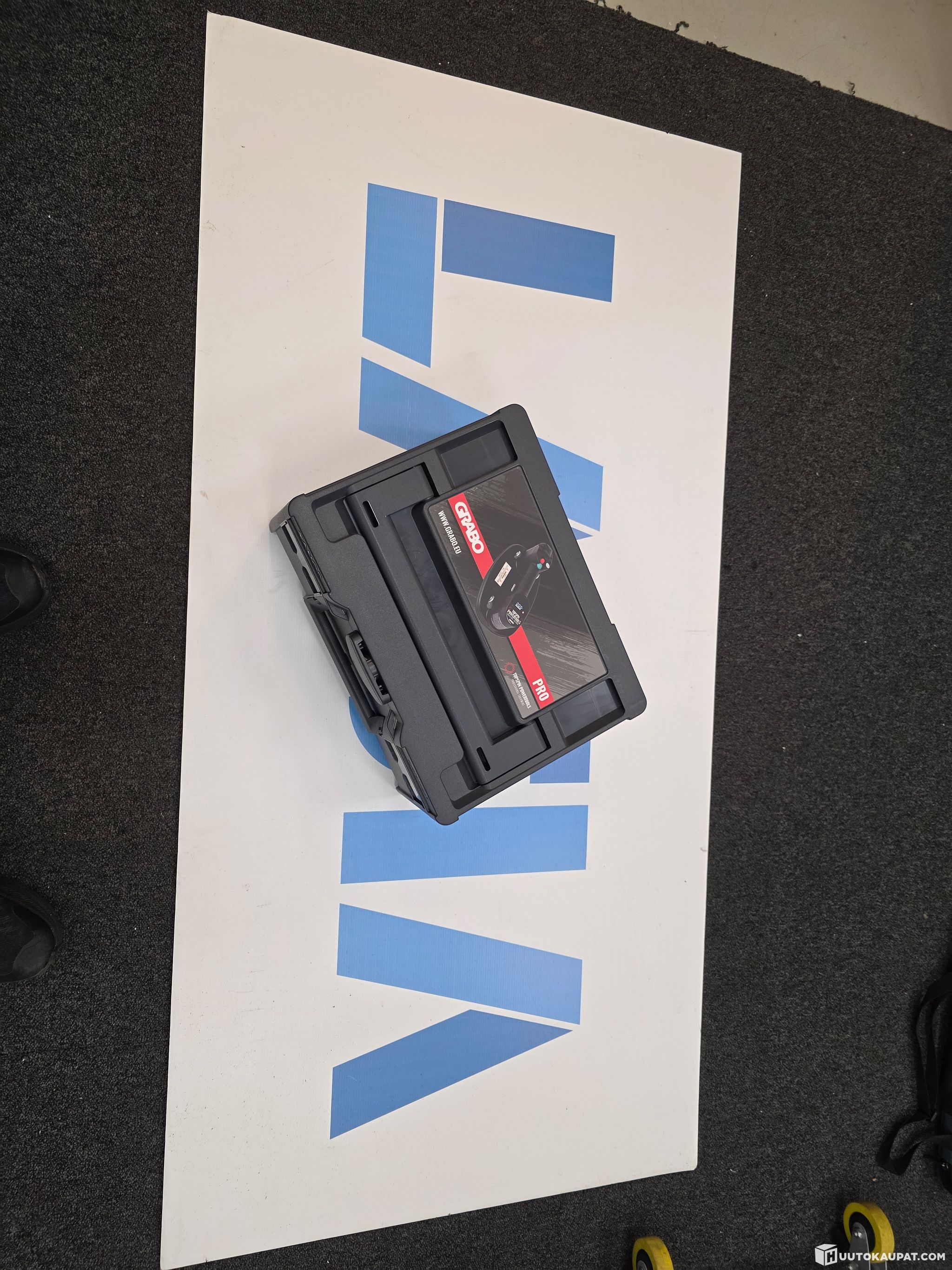 Akkukäyttöinen imukuppi Grabo pro-lifter 20 säilytyslaatikossa
