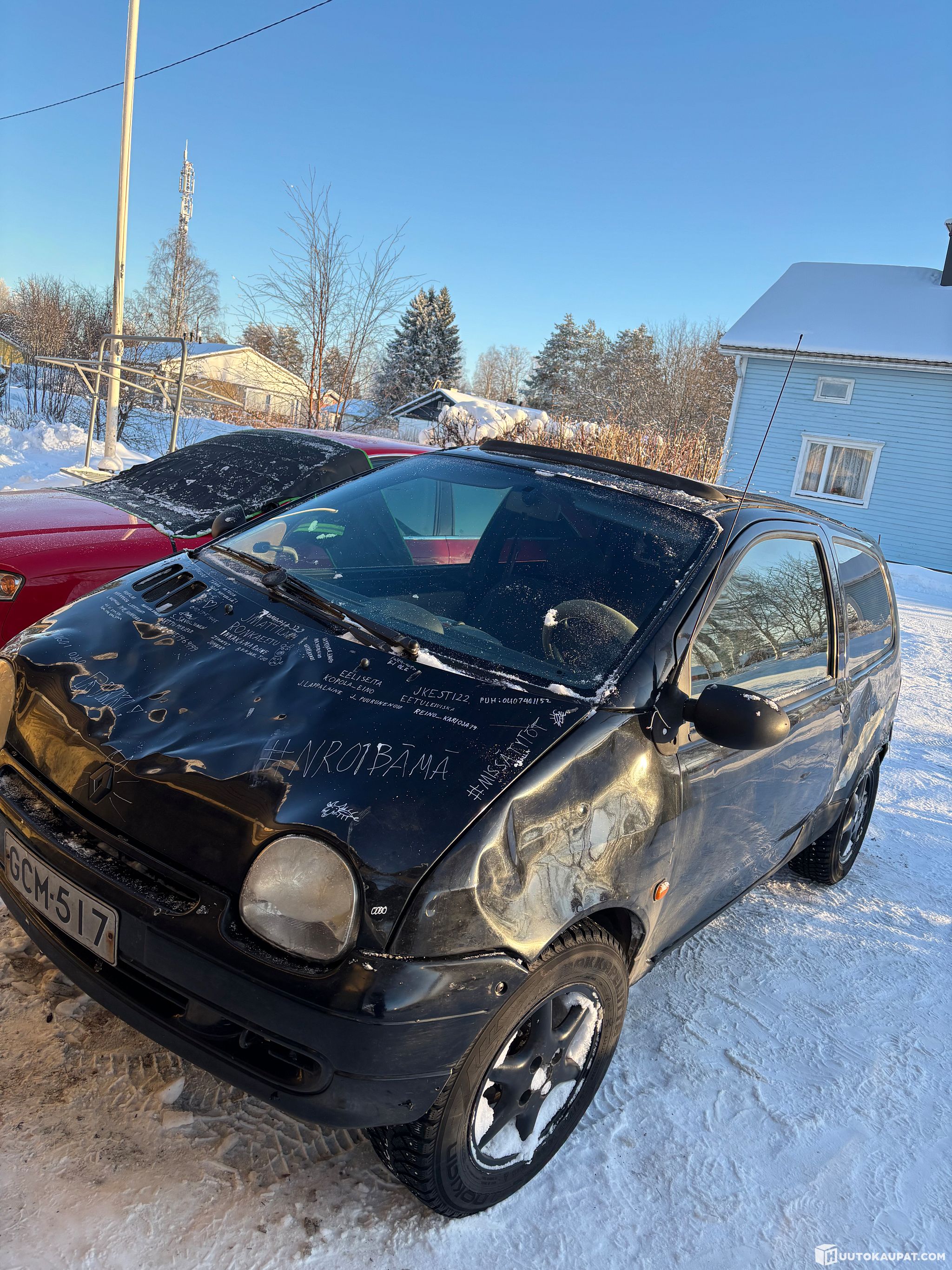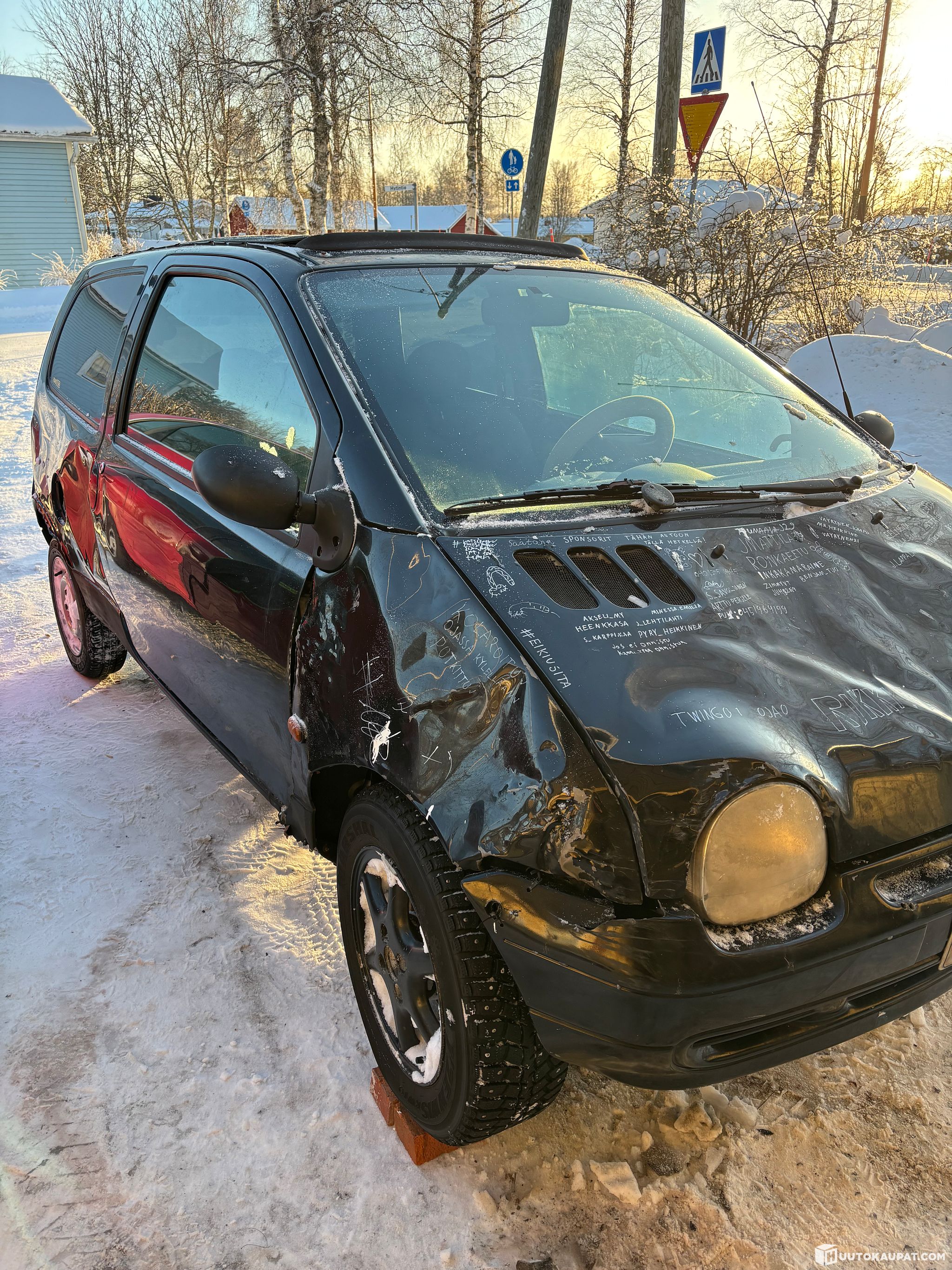 Tällä hetkellä tällaisia rättikattoisia Renault Twingo -malleja on vain yksi myynnissä, joten harvinaisemmasta yksilöstä on kyse. Tästä saa hyvän kesäauton, jos löytyy motivaatiota ja intoa kunnostaa.