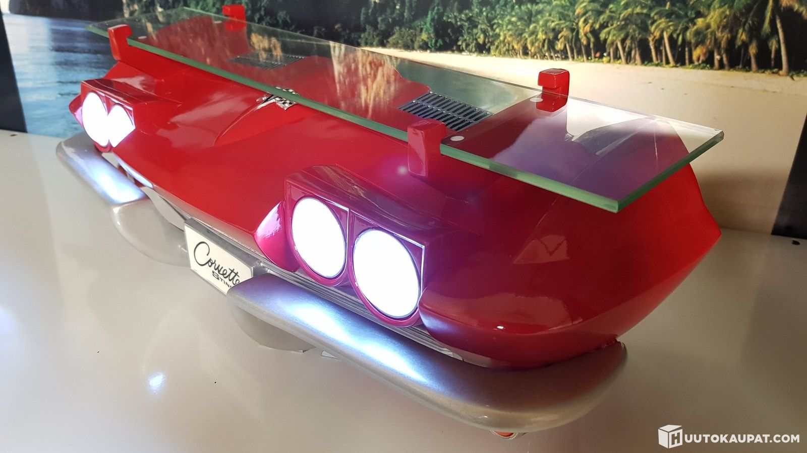 1963 Chevrolet Corvette Stingray mallin keula jonka päällä lasitaso ja valaistus (paristot virtalähteenä).