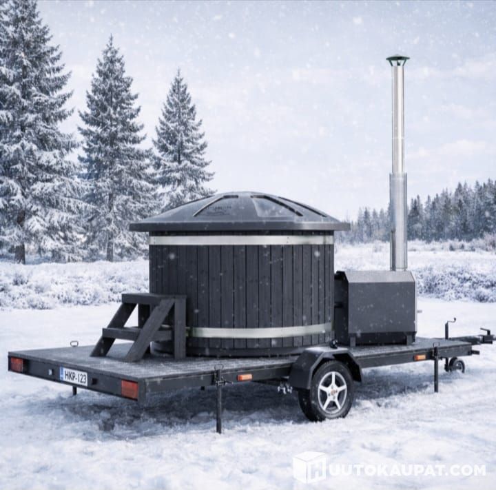 Markkinoiden ainoa EU-tyyppihyväksytty Arctic Blackline Hot Tub -paljuvaunu täydellisenä pakettina! 100 % kotimainen tuote! Nyt kaupanpäällisenä RST-etumaskilla ja lasiluukulla varustettu suuri ja tehokas merialumiinista valmistettu lämmitin! Paljuvaunu Arctic Blackline norm. ovh 5990 €.