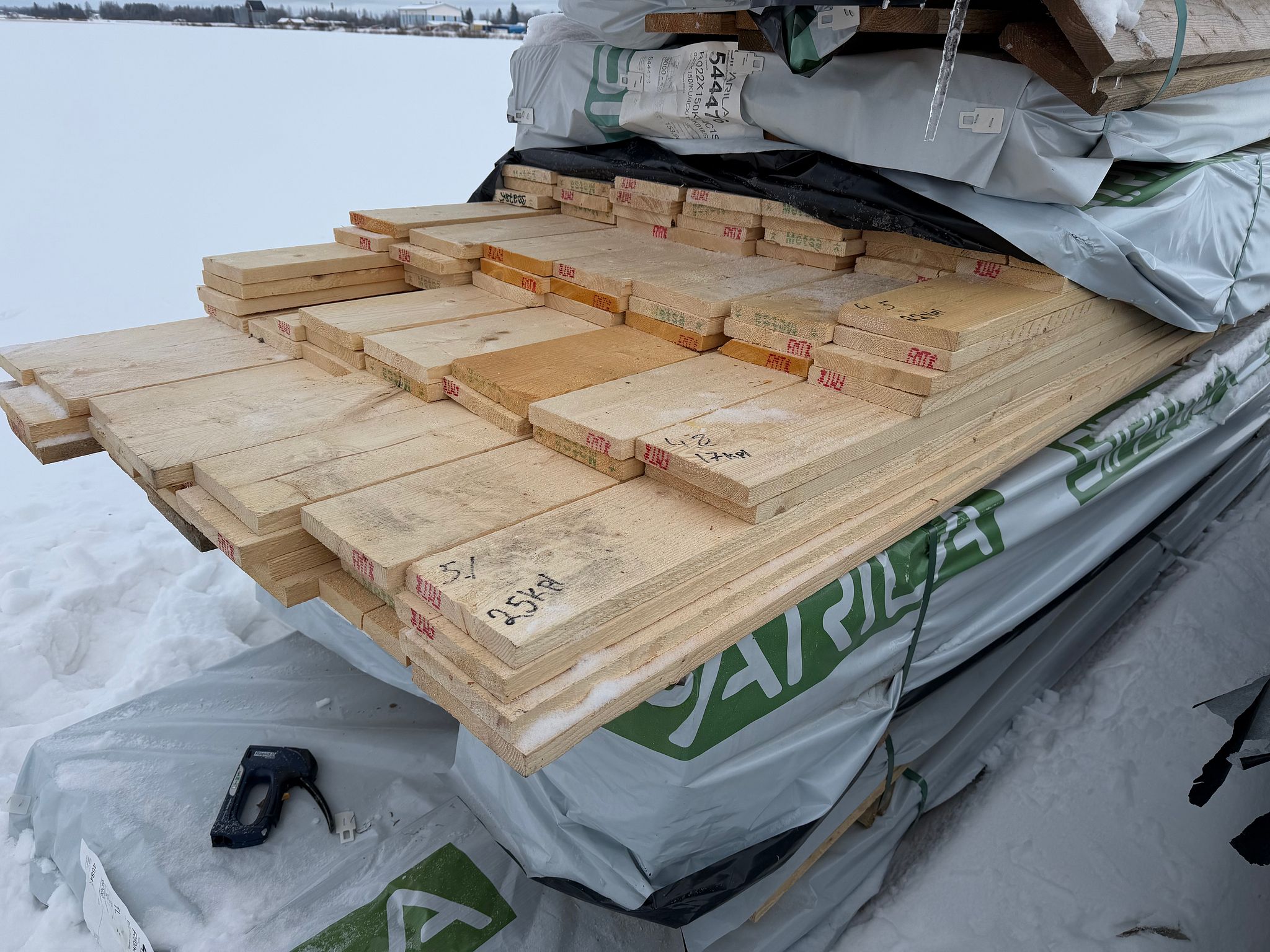 Vinyylilankku Premium. Sävy: Valkoinen Hiekka. SPC Kivikomposiittirunko Integroidulla-askeläänieristeellä. 107.18m2, Oulu