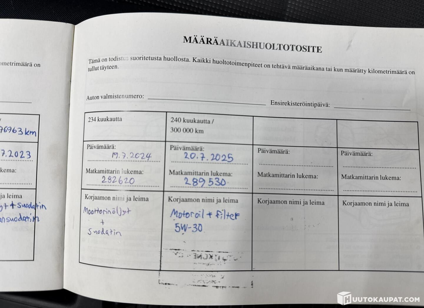Viimeisin huolto tehty 20.07.2025 / 289 500 ajettuna