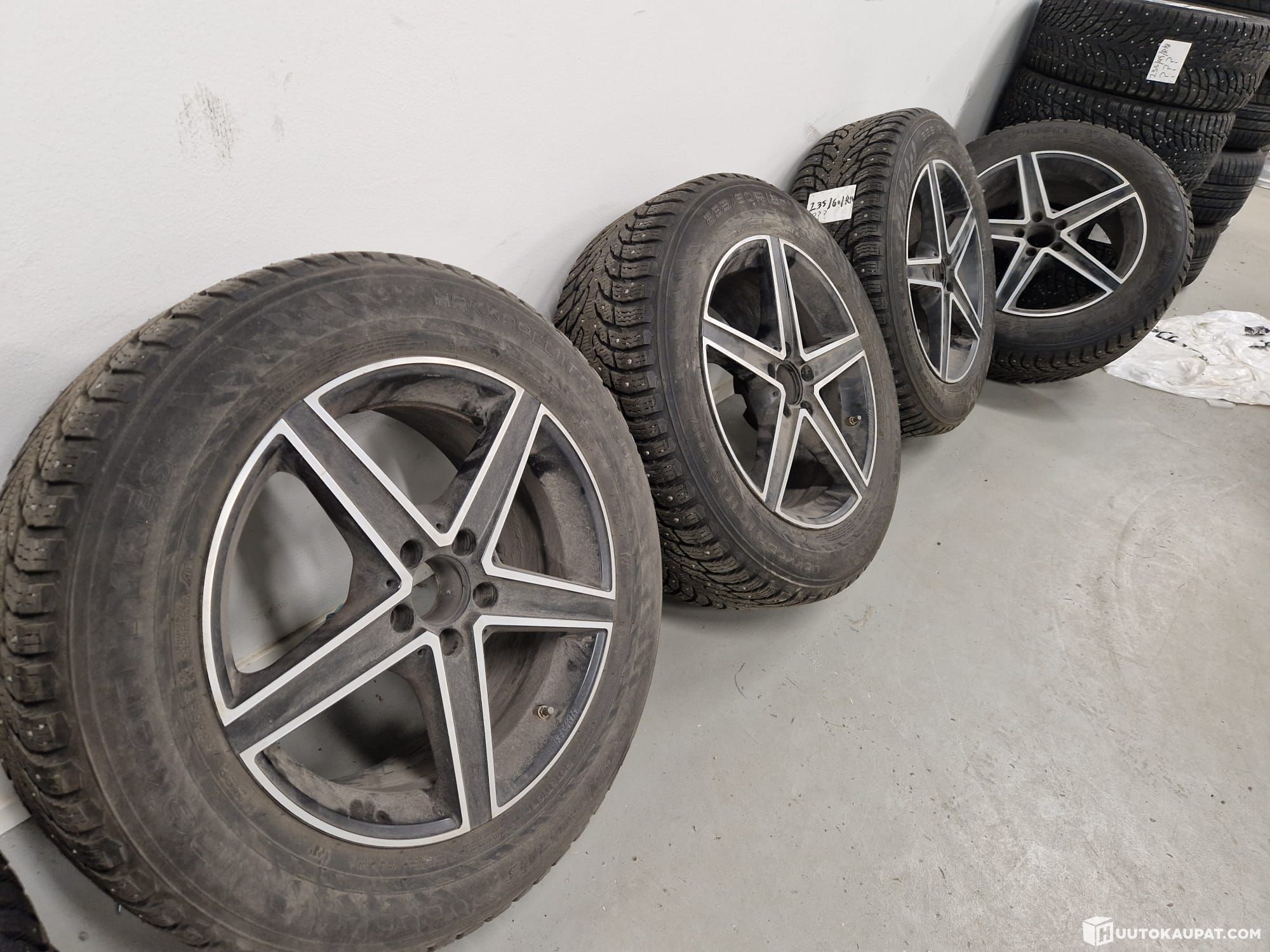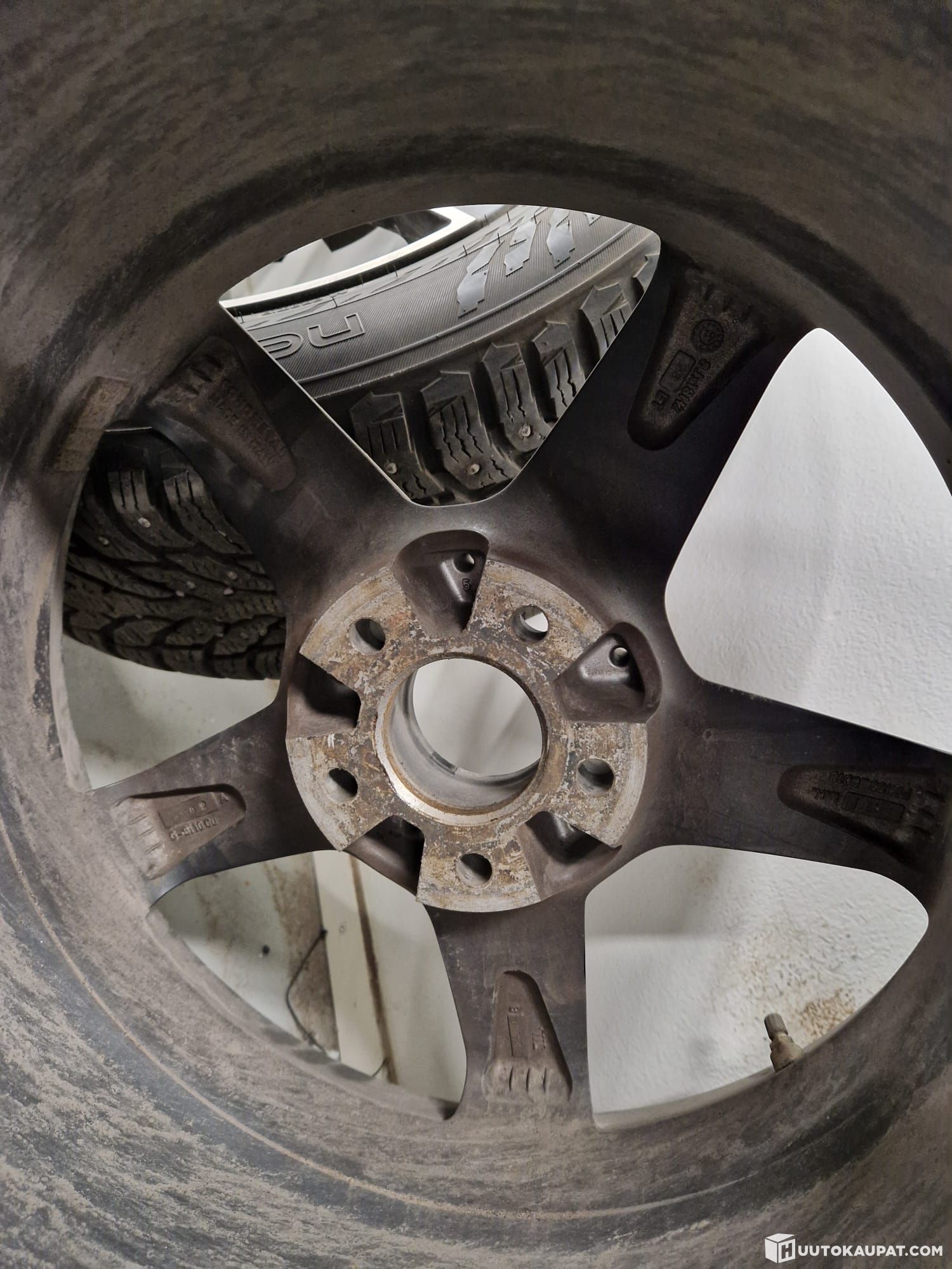 Ilmeisemmin mersun maasturista jääneet vanteet nastarenkailla.