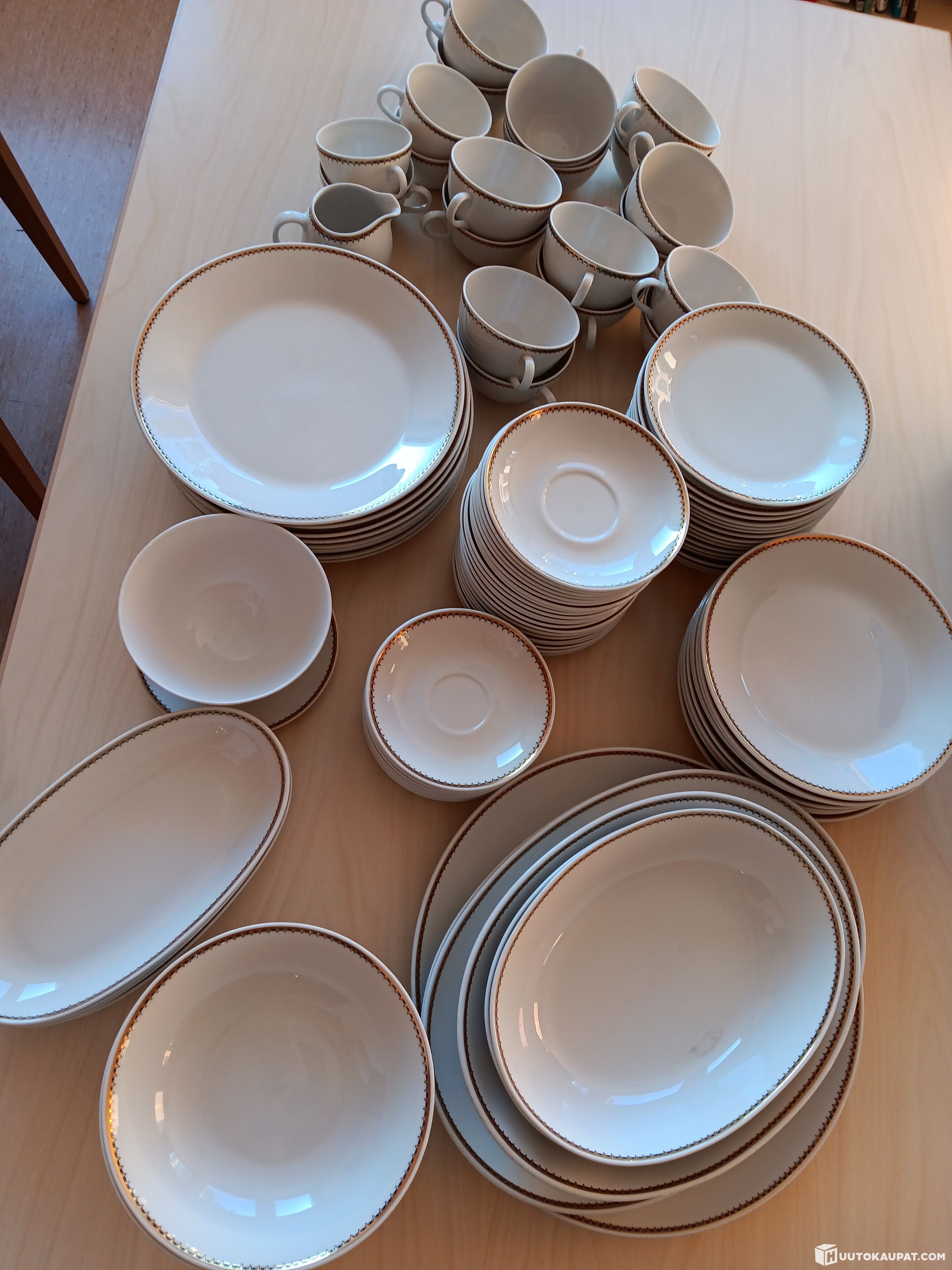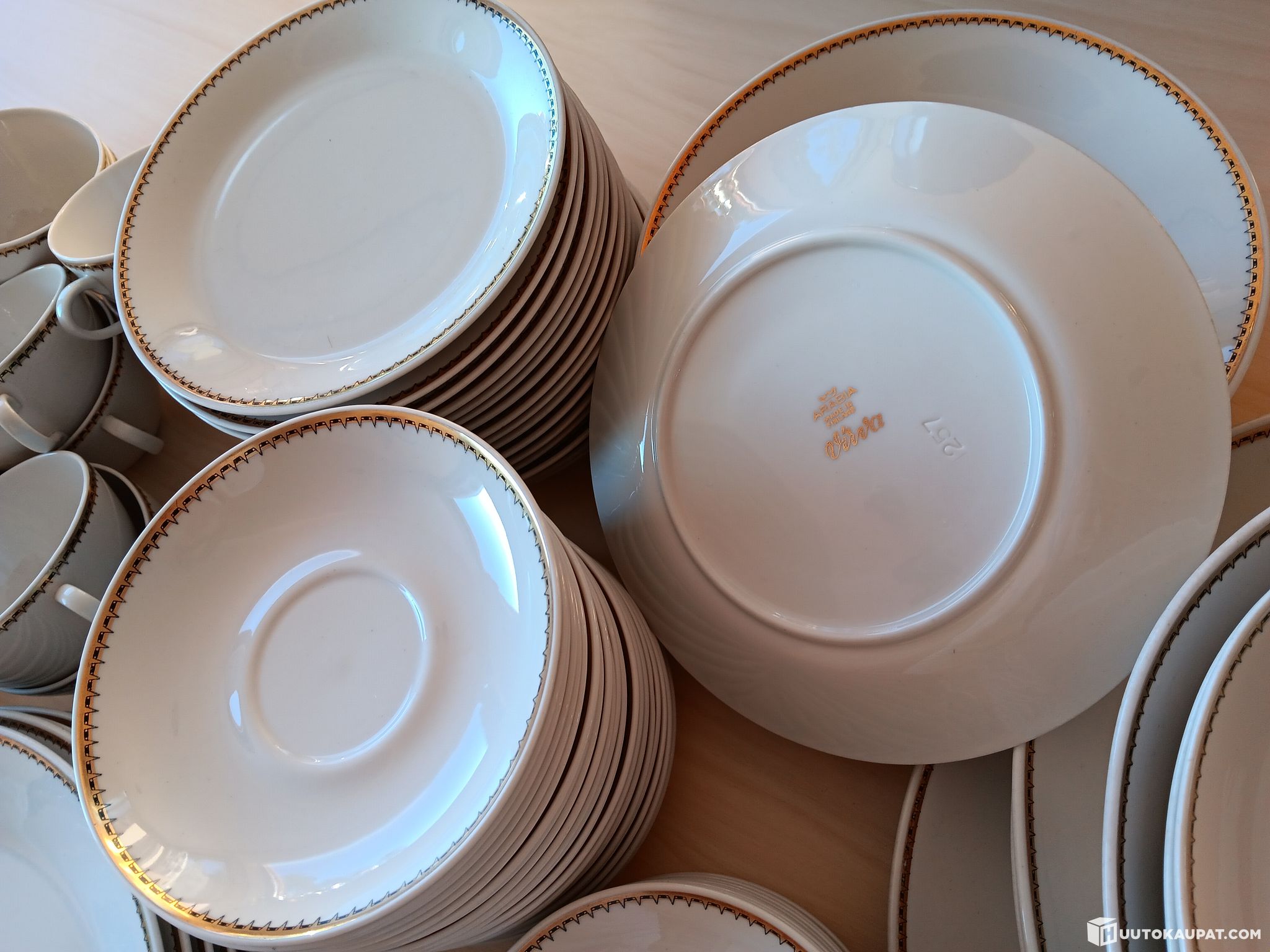 Myydään Arabian Virvasarjan lautasia, kuppeja, vateja erilaisia määriä. Myydään yhtenä settinä. Astiasto on vanha ja käytössä ollut, mutta hyvässä kunnossa. Astiasto myydään siinä kunnossa,kuin se on kaupantekohetkellä. Lisätietoja S-postilla : miia.makirinta@novida.fi