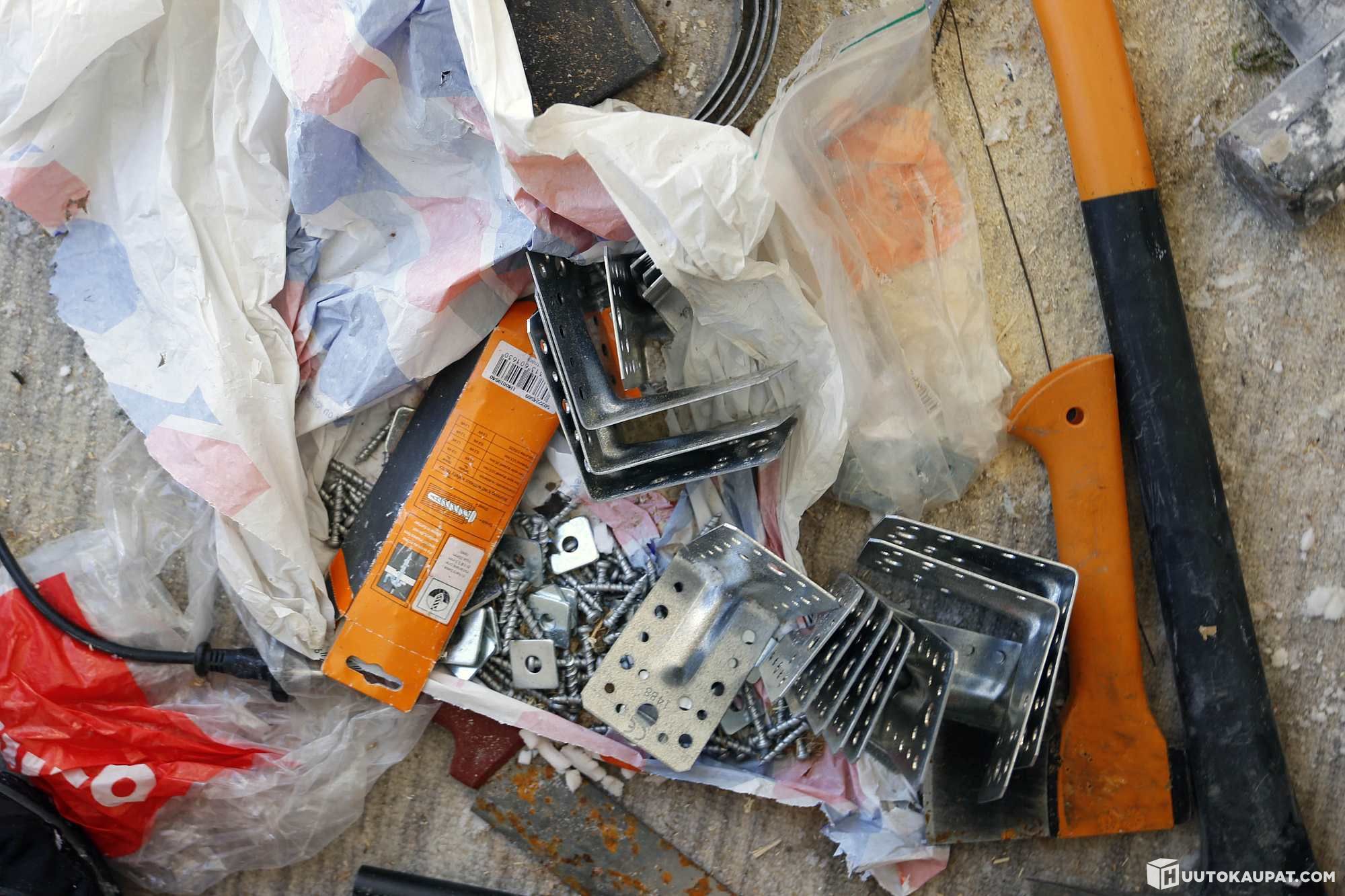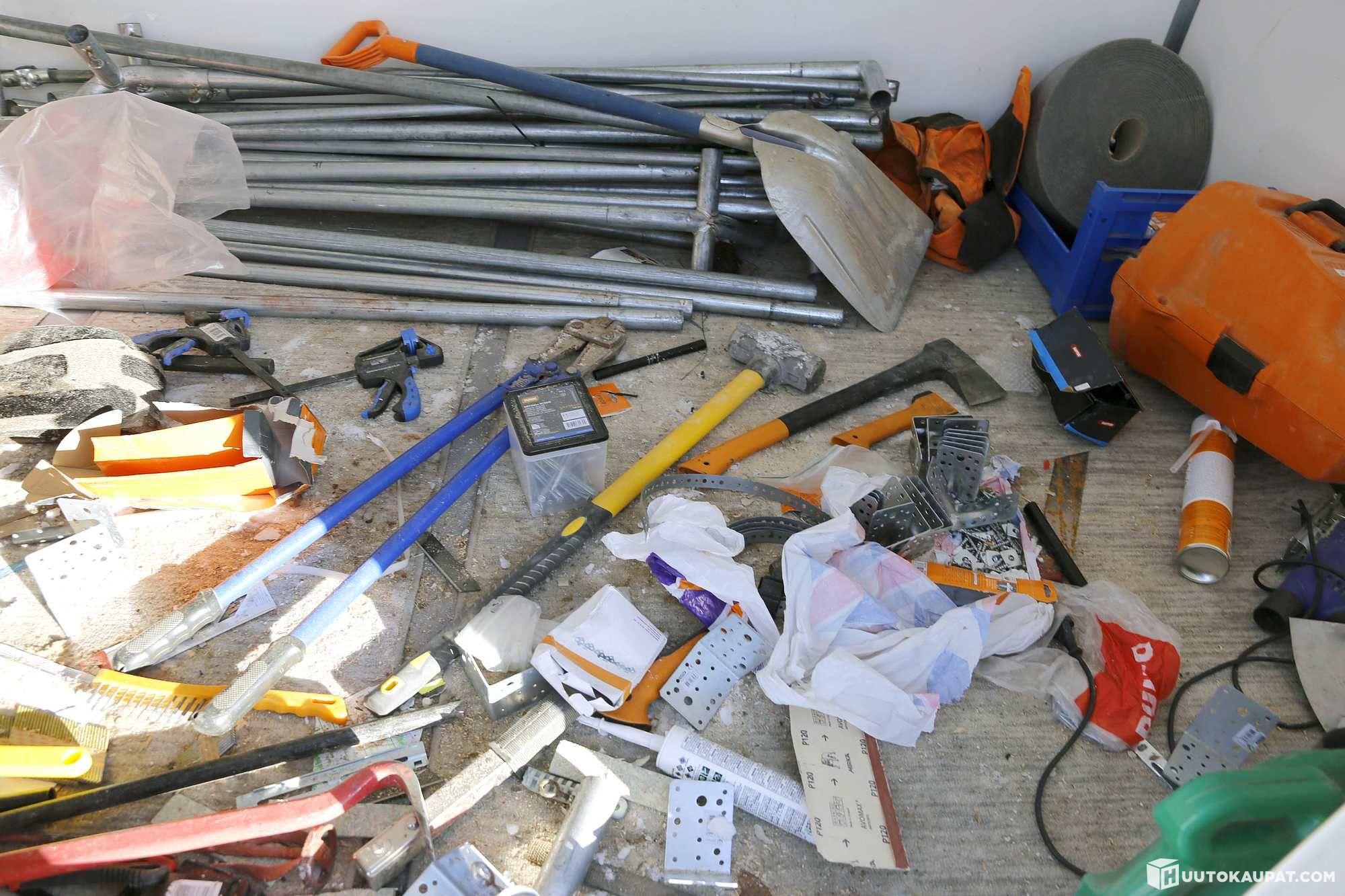 Työkaluja, kiinnikkeitä, tarvikkeita, telttarunko (vain runko)