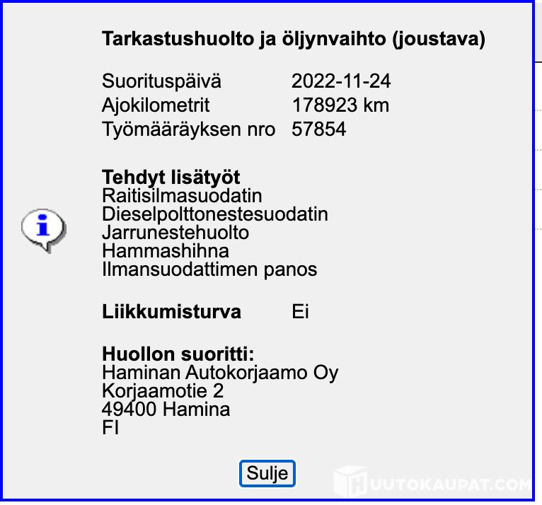 Jakohihna vaihdettu 178tkm 11/2022