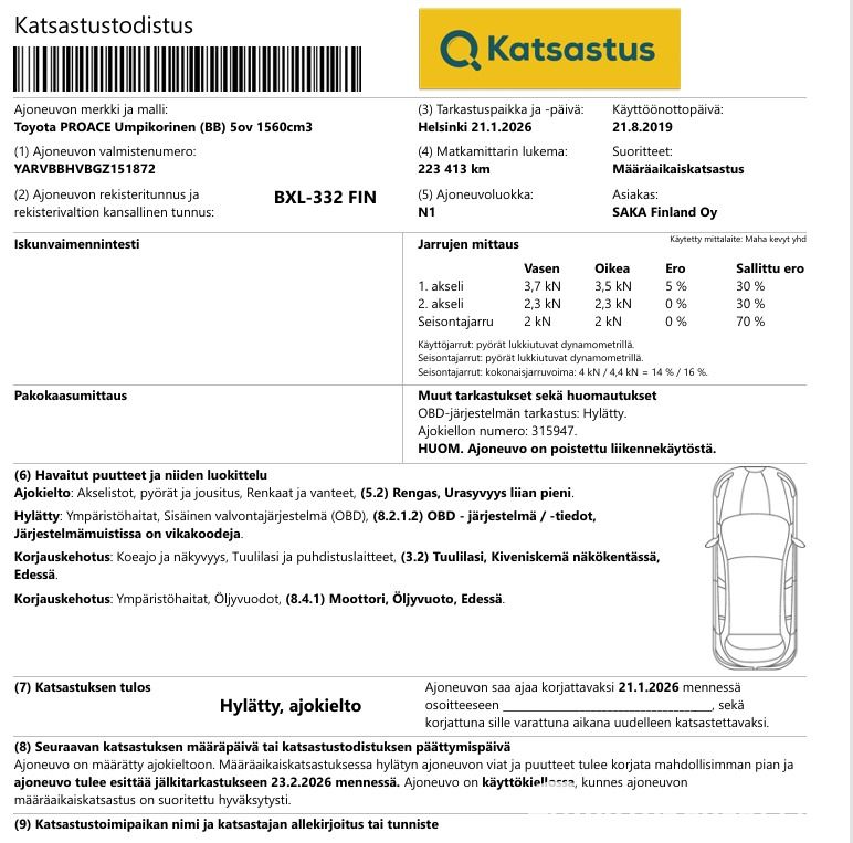 Ajokiellossa, katsastuslappu kuvissa.