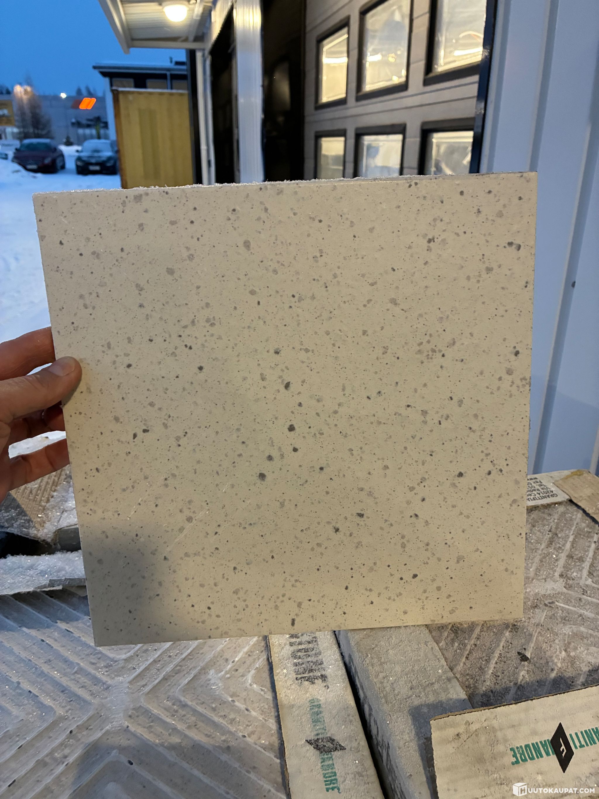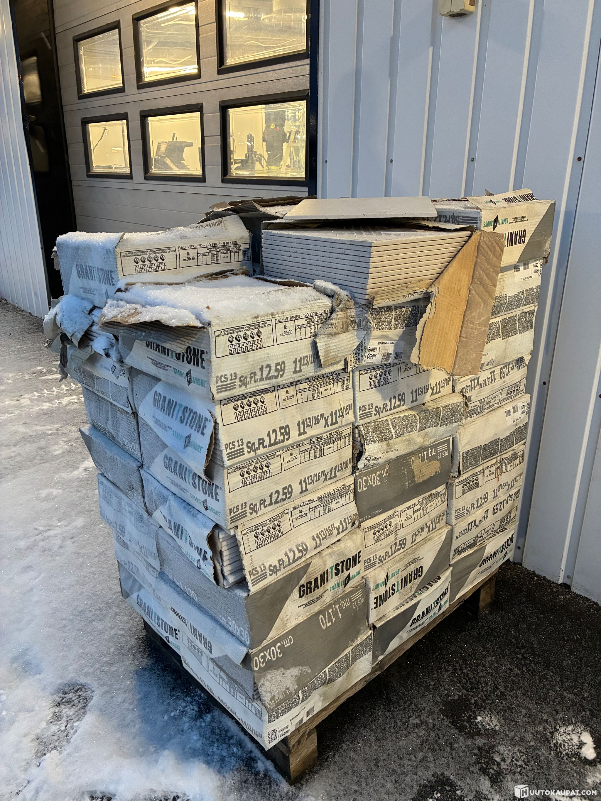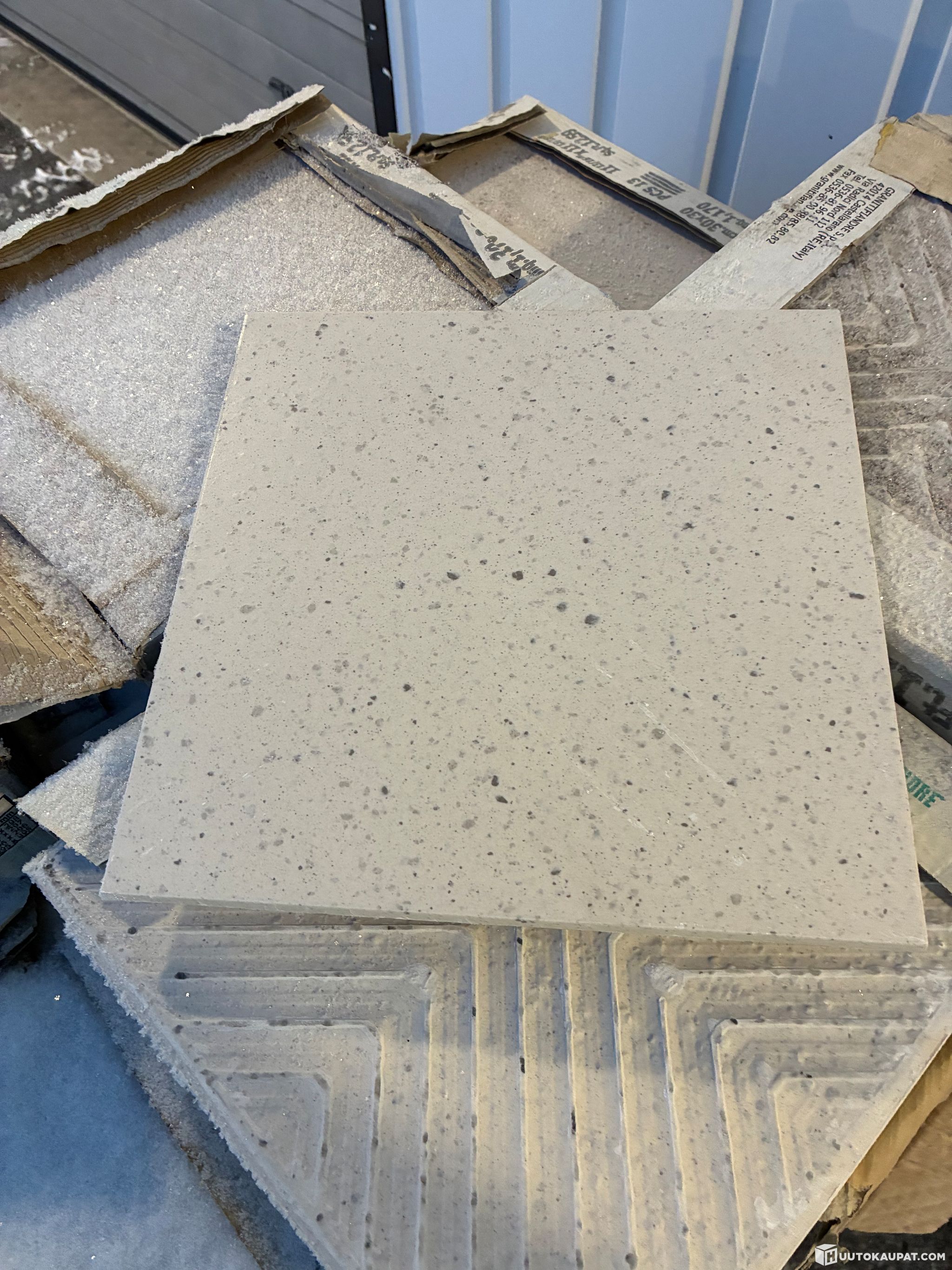 Ylimääräisiä laattoja 30cm x 30cm monta laatikkoa. Yhdessä laatikossa 1.17m2 ja niitä on noin 48kpl.