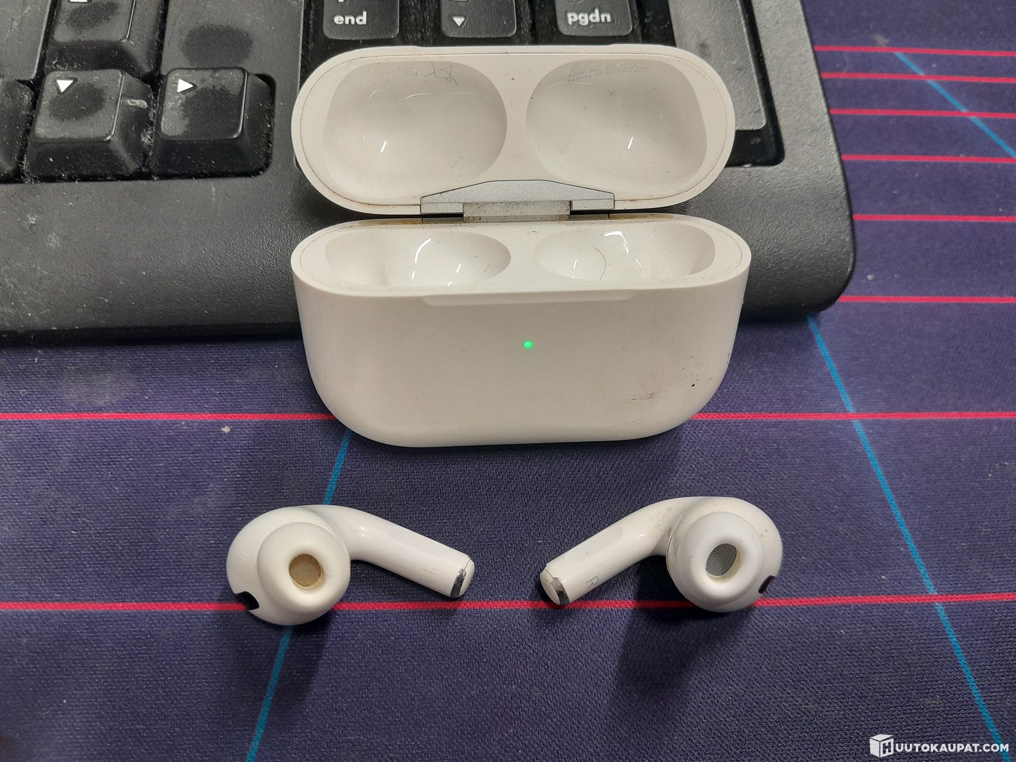 Käytetyt. Mukana napit, latauskotelo ja laturi. Korvapehmusteet kokoa S