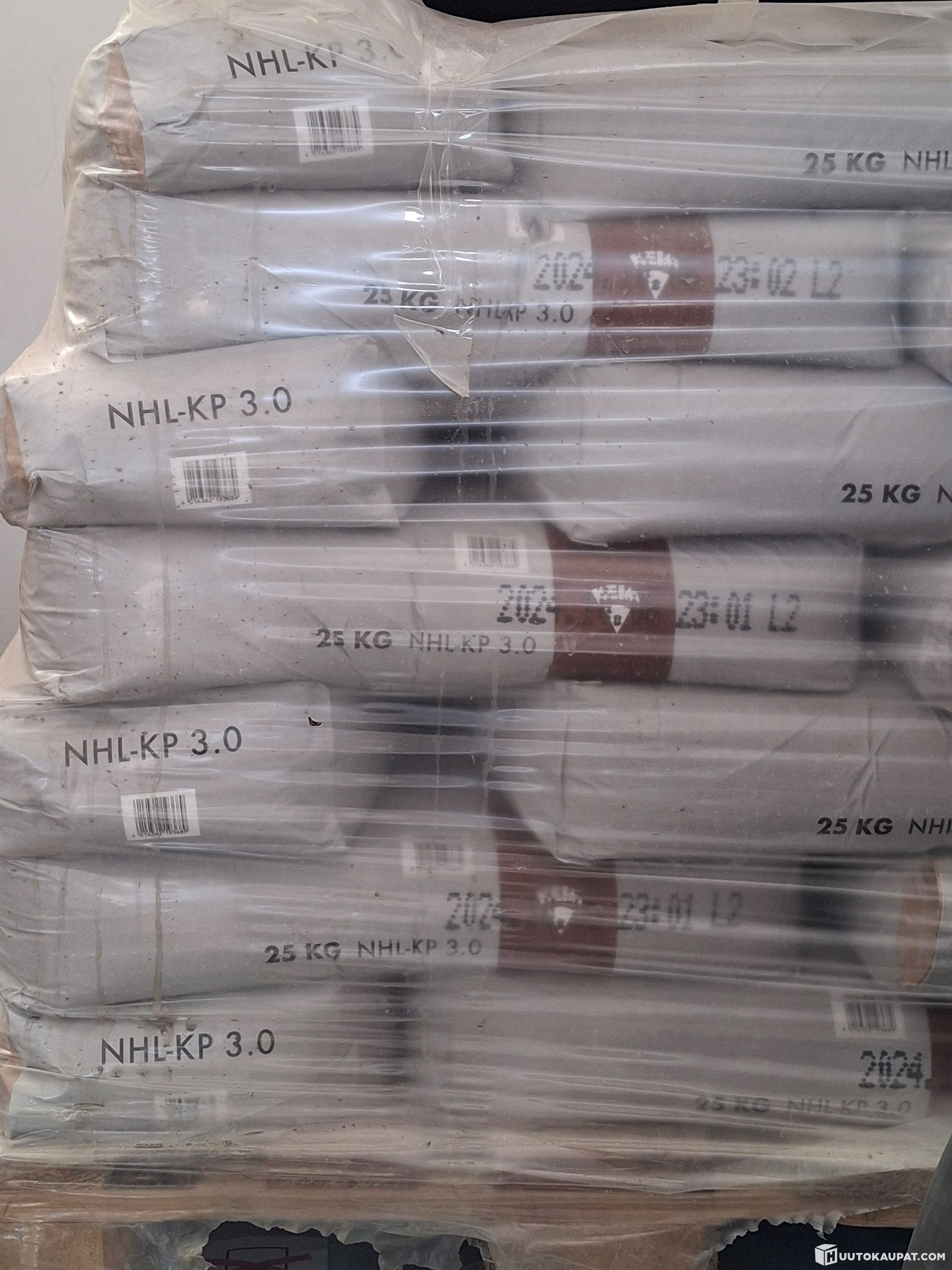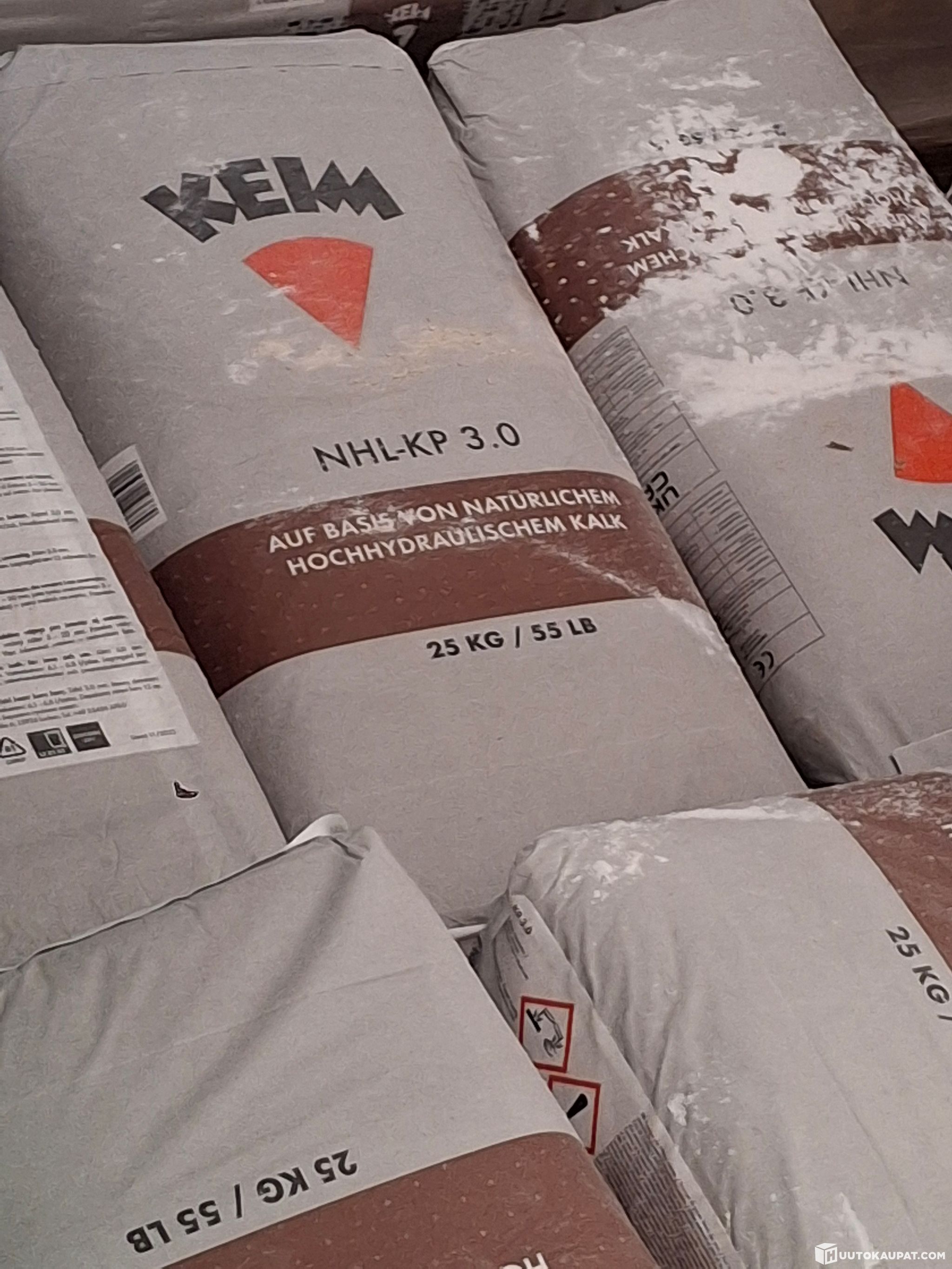 Keim NHL-KP rappauslaasti säkkejä 252 kappaletta. Säkit on säilytetty kuivassa ja lämpimässä hallissa. Päiväys on säkeistä mennyt.