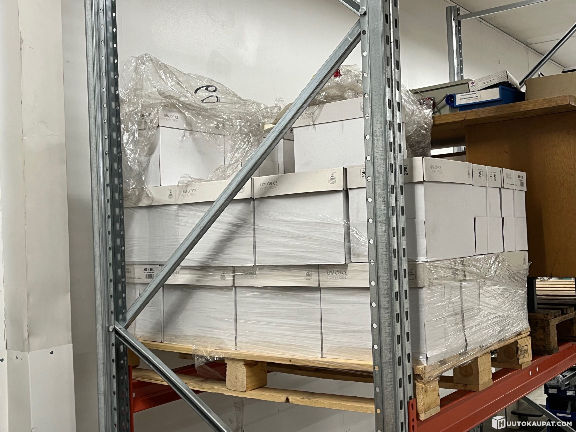 Valkoista UPM Office Copy/Print 80g/m^2 A4 kopiopaperia noin 26 laatikollista.