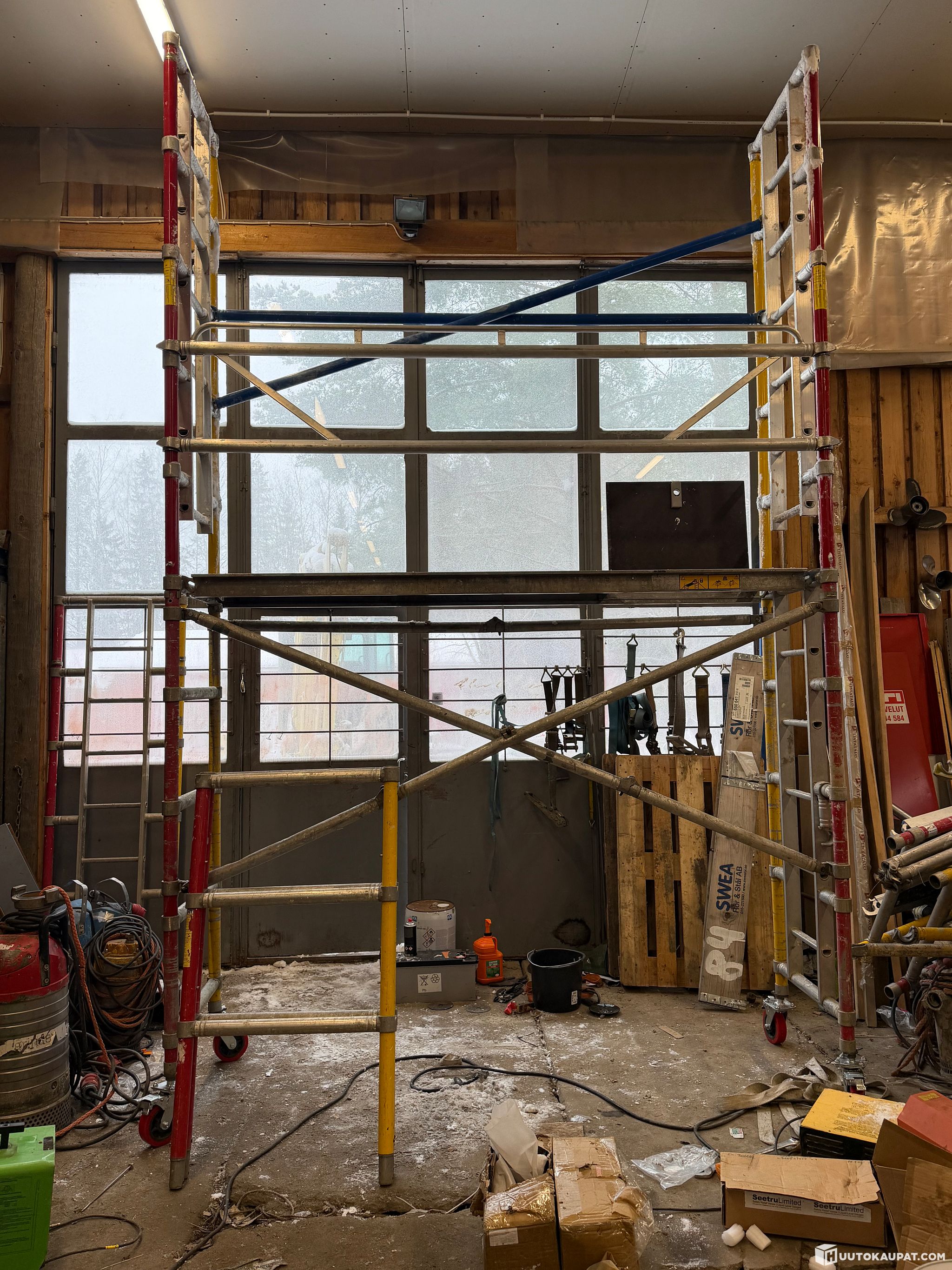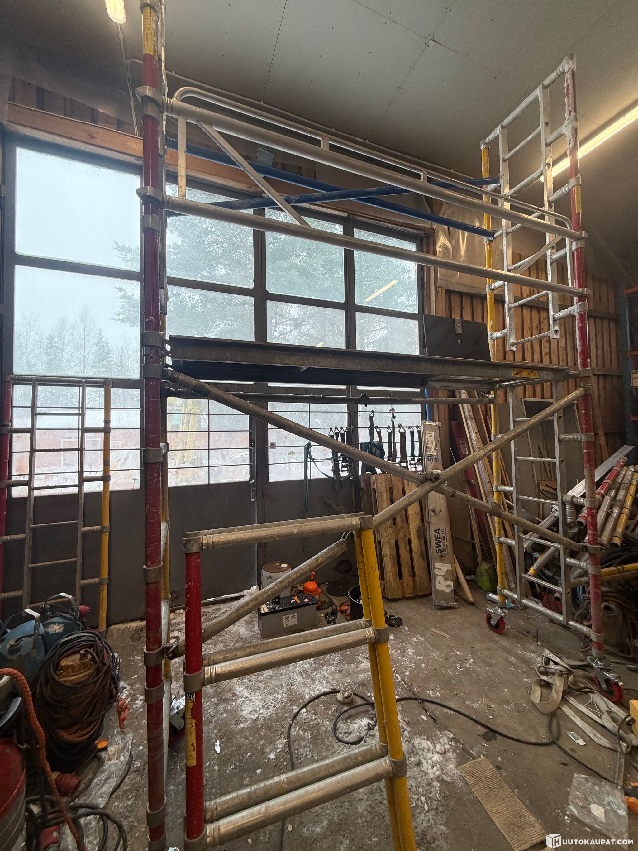 Kuvan telinei.tällä yllät työskentelemään 6m korkeuteen.puretaan valmiiksi noutoa varten.