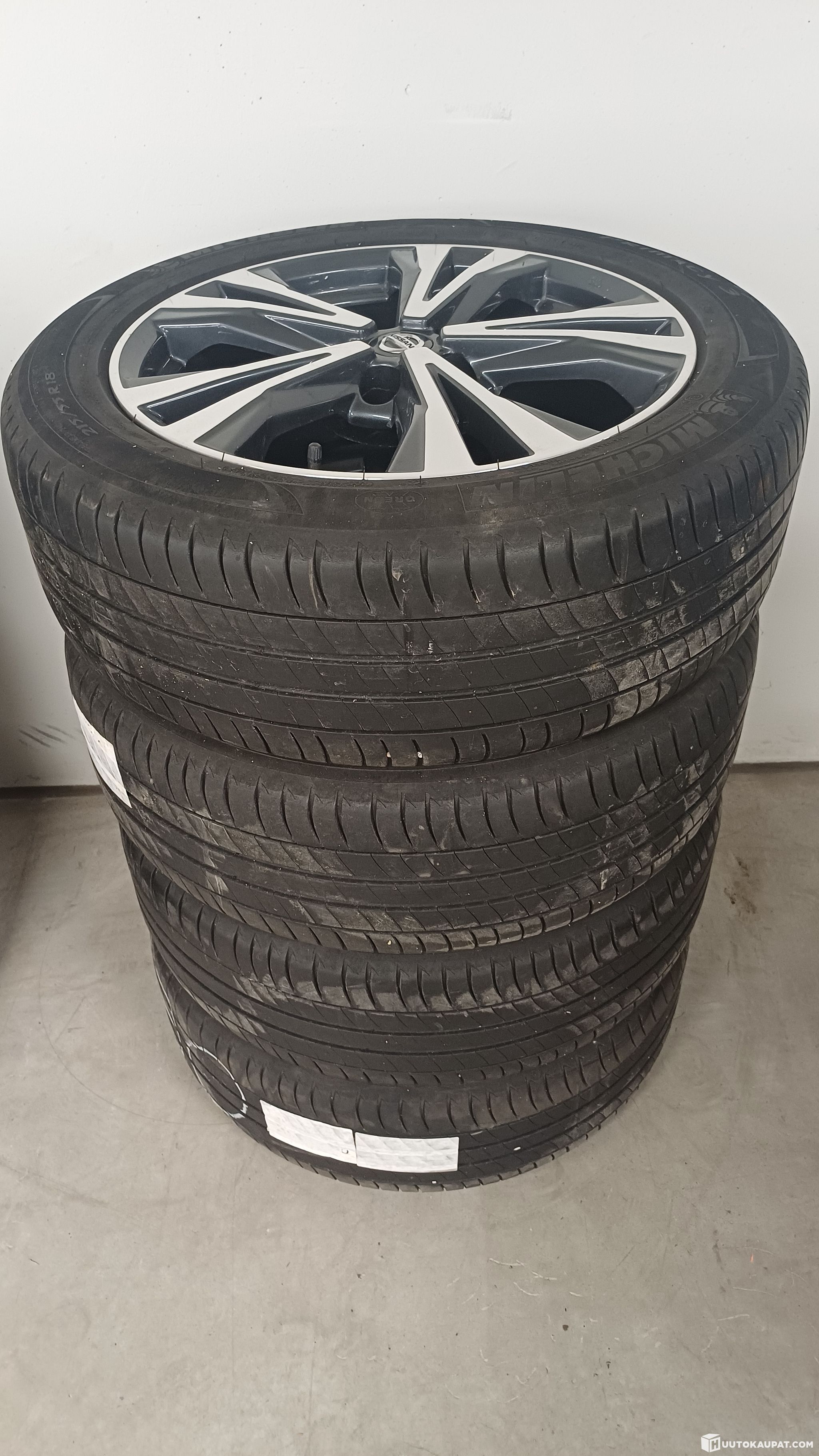 Hyvä kuntoiset alkuperäisvanteet Qashqai J11 malliin . koko 18x7 jako 5x114,3 ET40. Vanteissa tunnistimet, renkaissa pintaa n.5mm. Michelin Primacy kesärenkaissa paisto jo vanhempi, näkyy kuvassa.