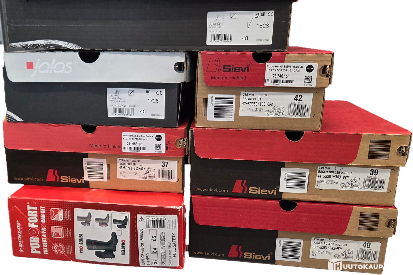 Sievi Racer Roller High S3 koot 39 ja 40. Sievi Relax XL S1 koko 42. Sievi Star Roller S3 koko 37.