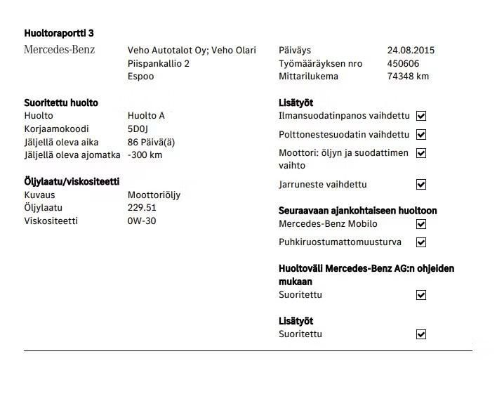 Viimeisin huolto 300tkm kohdalla
