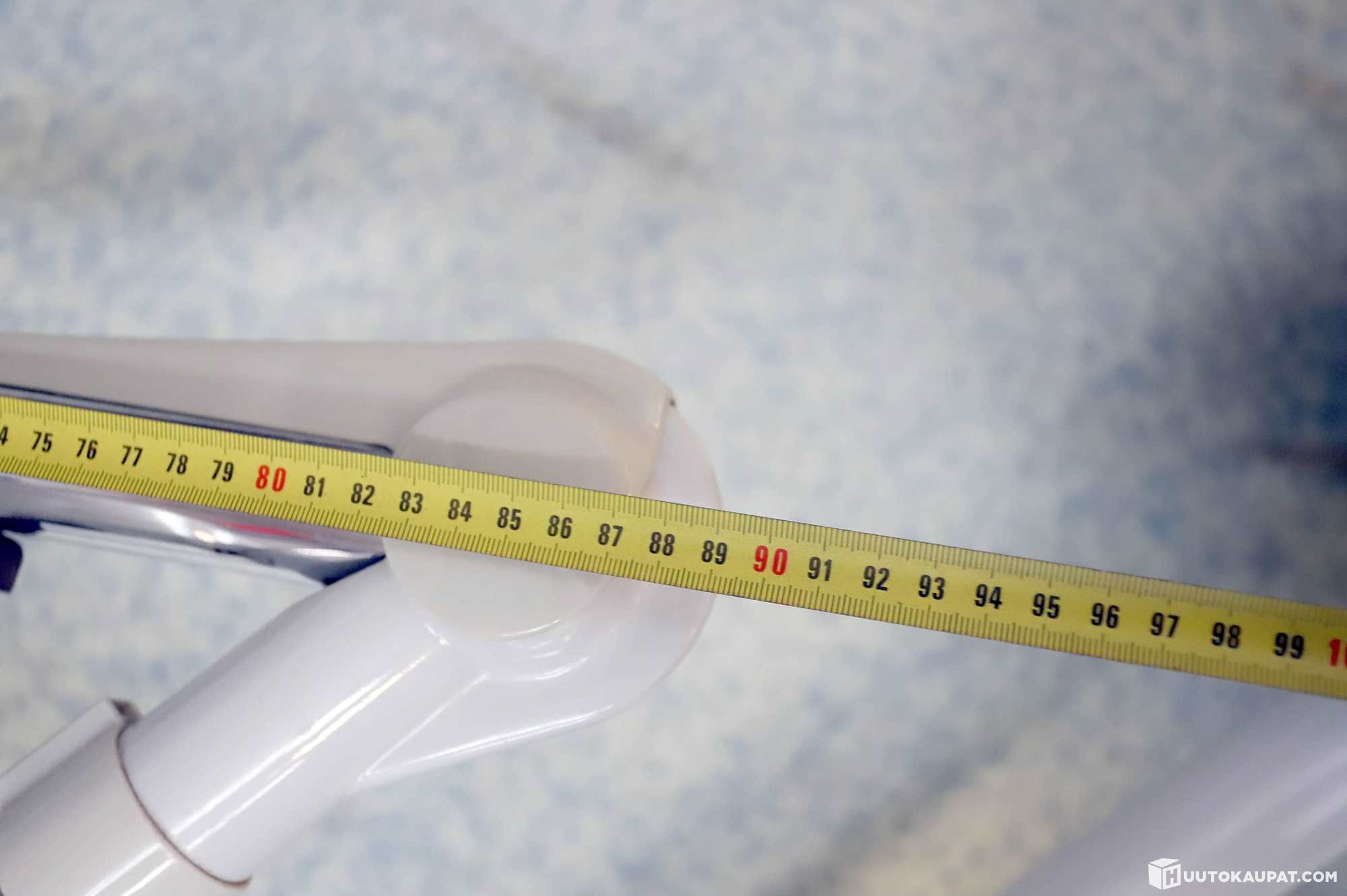 Kolmiosaisen varren mitat noin 120cm, 85cm ja 90cm.