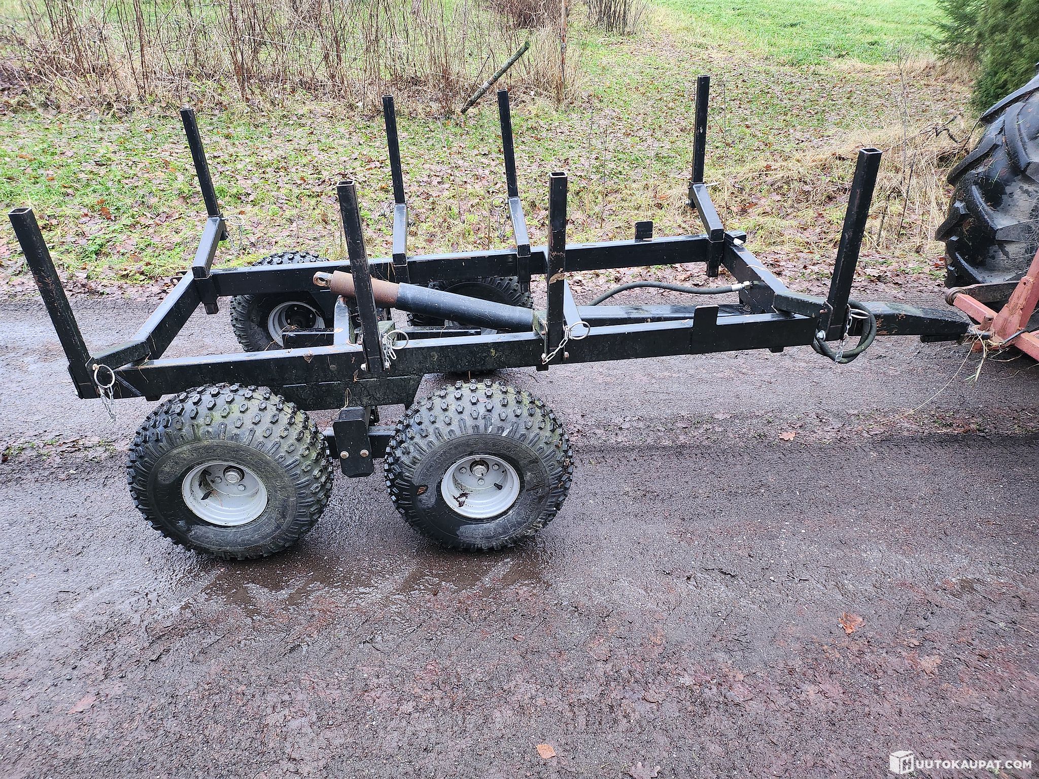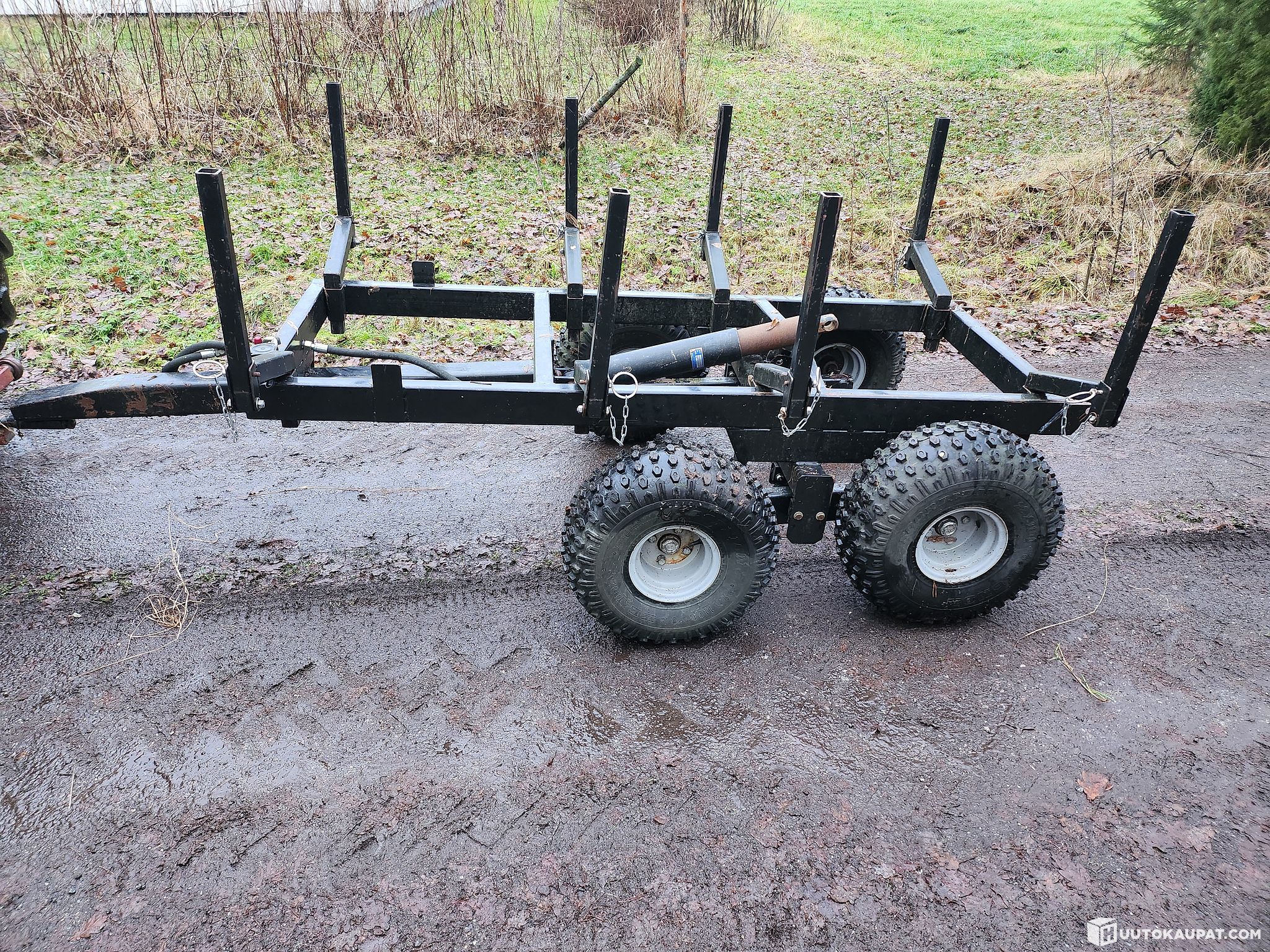 Metsäkärry telillä ja irroitettavilla ja taittuvilla paalikkailla, sylinteri ei kuulu kauppaan. Pohja 2,13 m x 0,80 m, korkeutta 57 cm. Kuljetuksesta voidaan sopia erikseen.