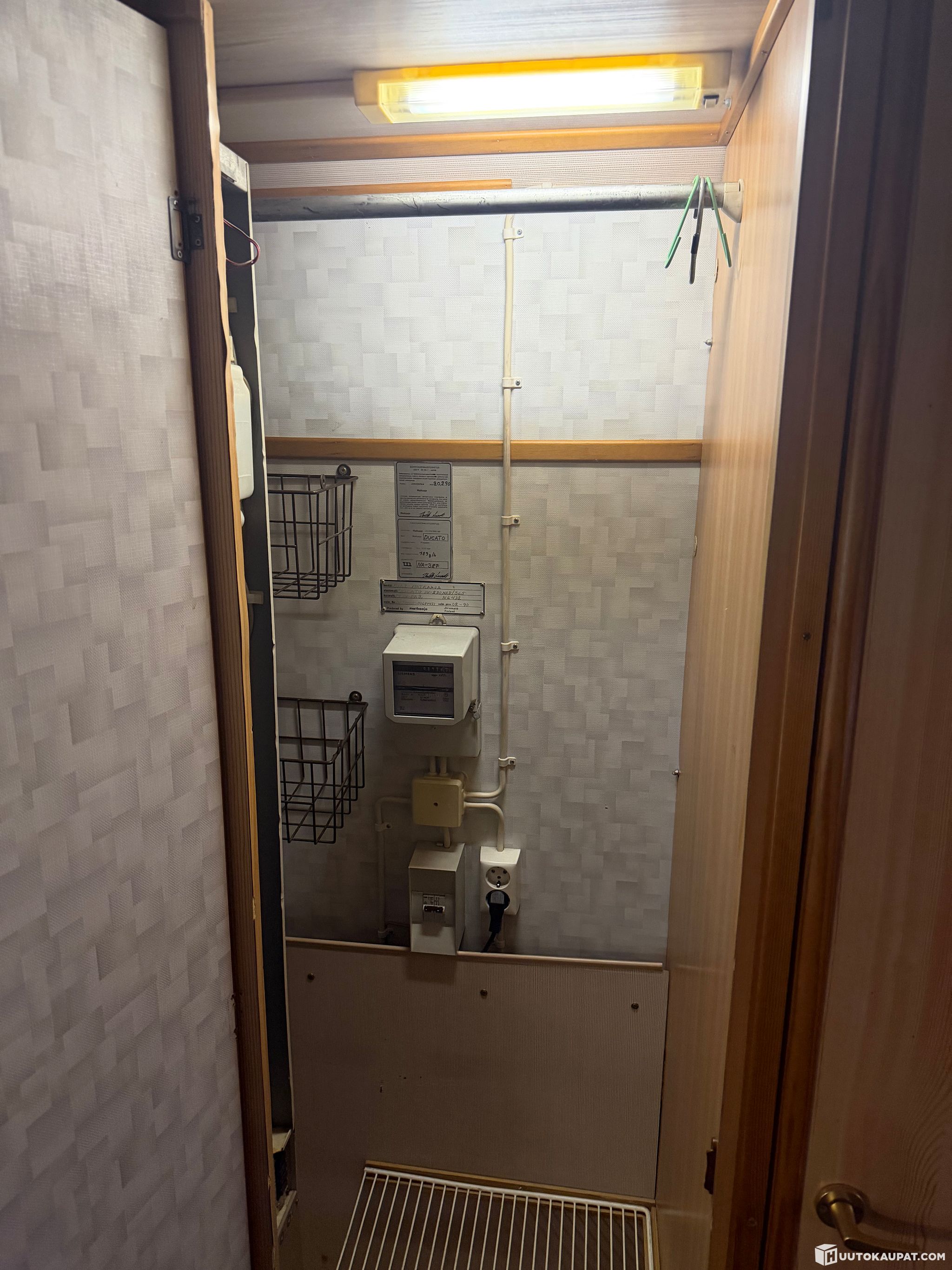 Kaasu, sähkö ja vesi toimii. Kävin itse laitteita läpi ja kaikki lähtivät päälle, mitään varmuutta ei annetta laitteille jatkoa varten. Myös edellisen omistajan mukaan laitteet toimivat ja auto ollut käytössä tähän vuoteen asti!