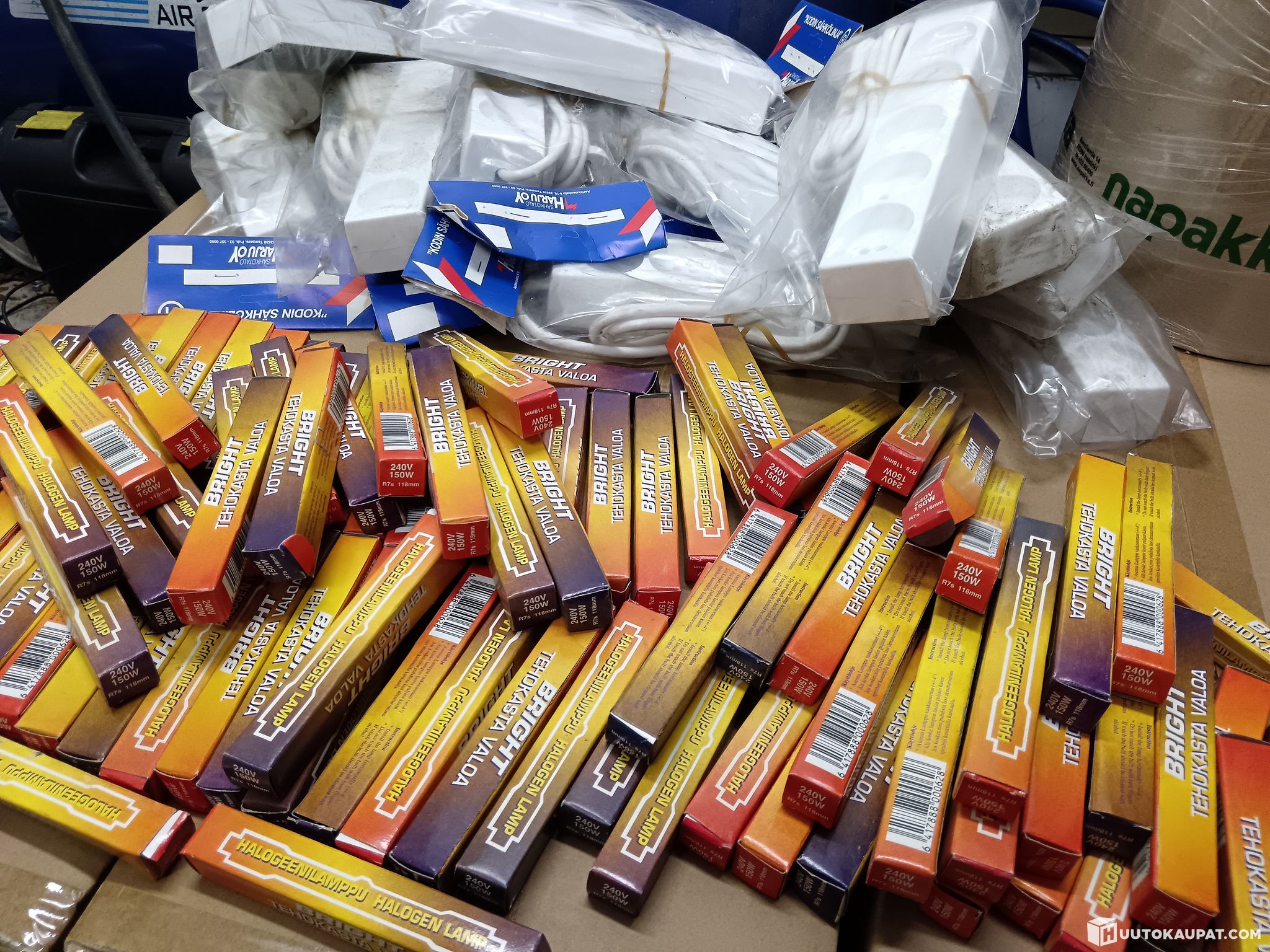 Halogeenilamppuja 95 kpl + jatkojohtoja 12 kpl (1,5 m)