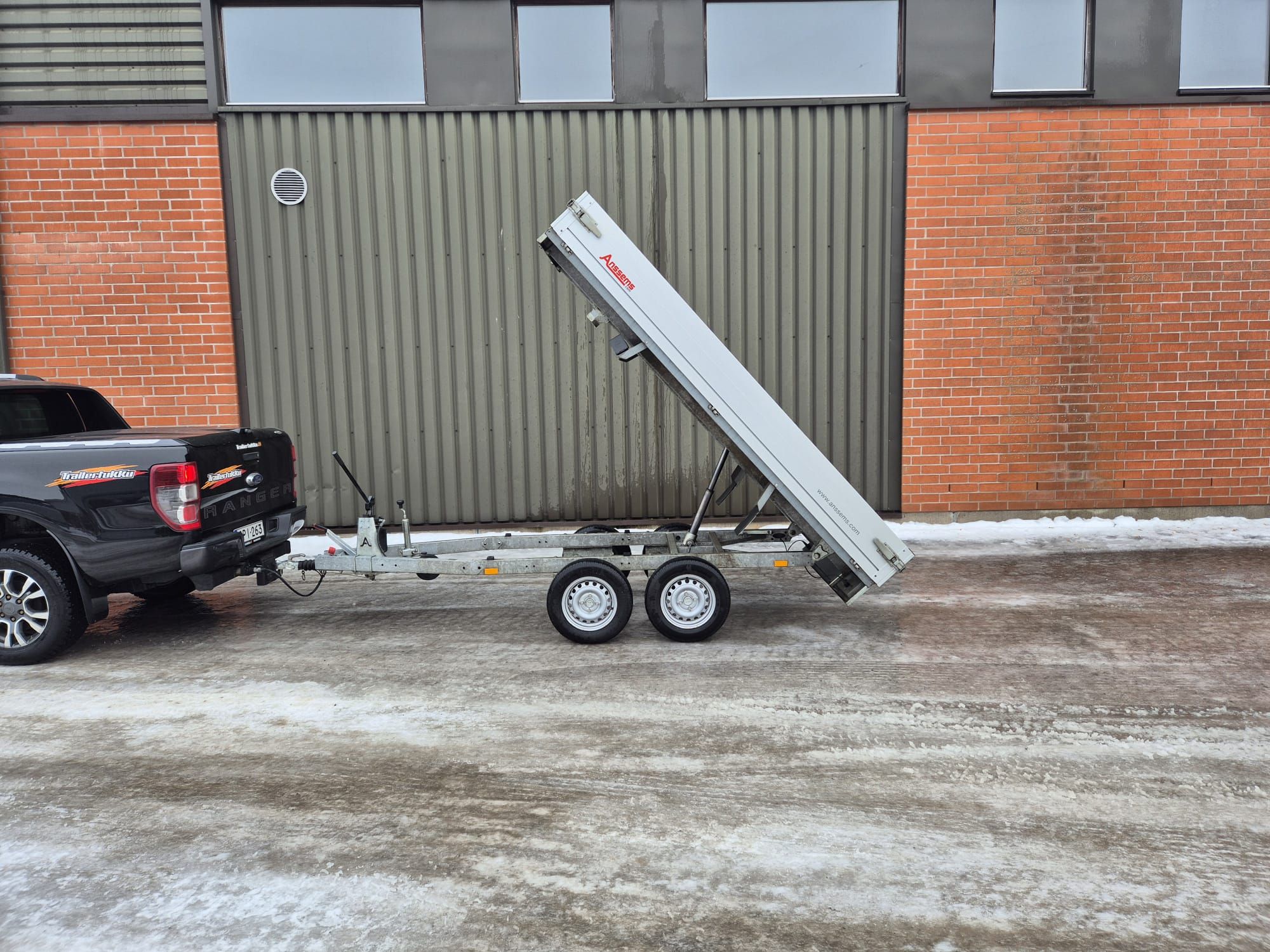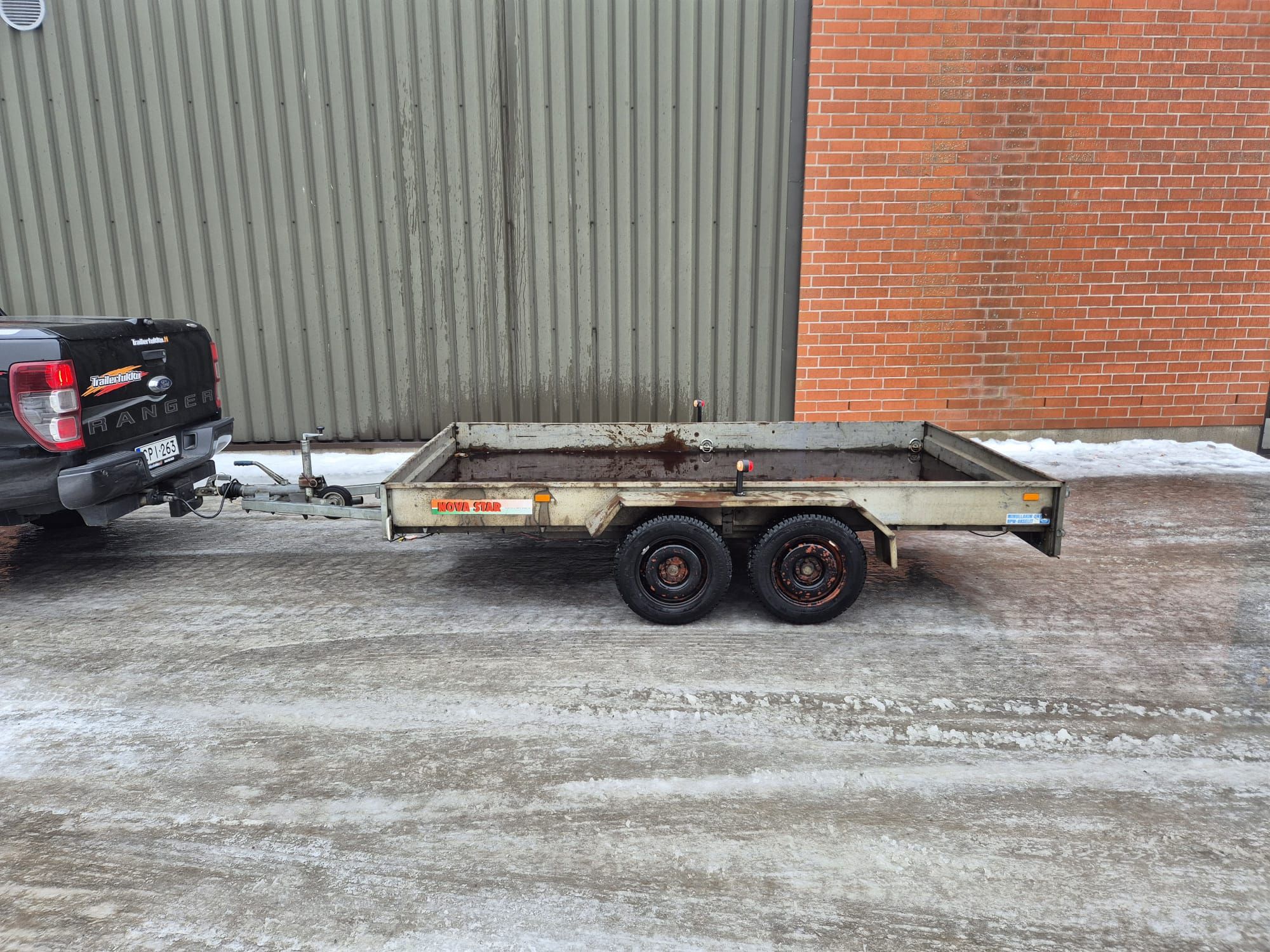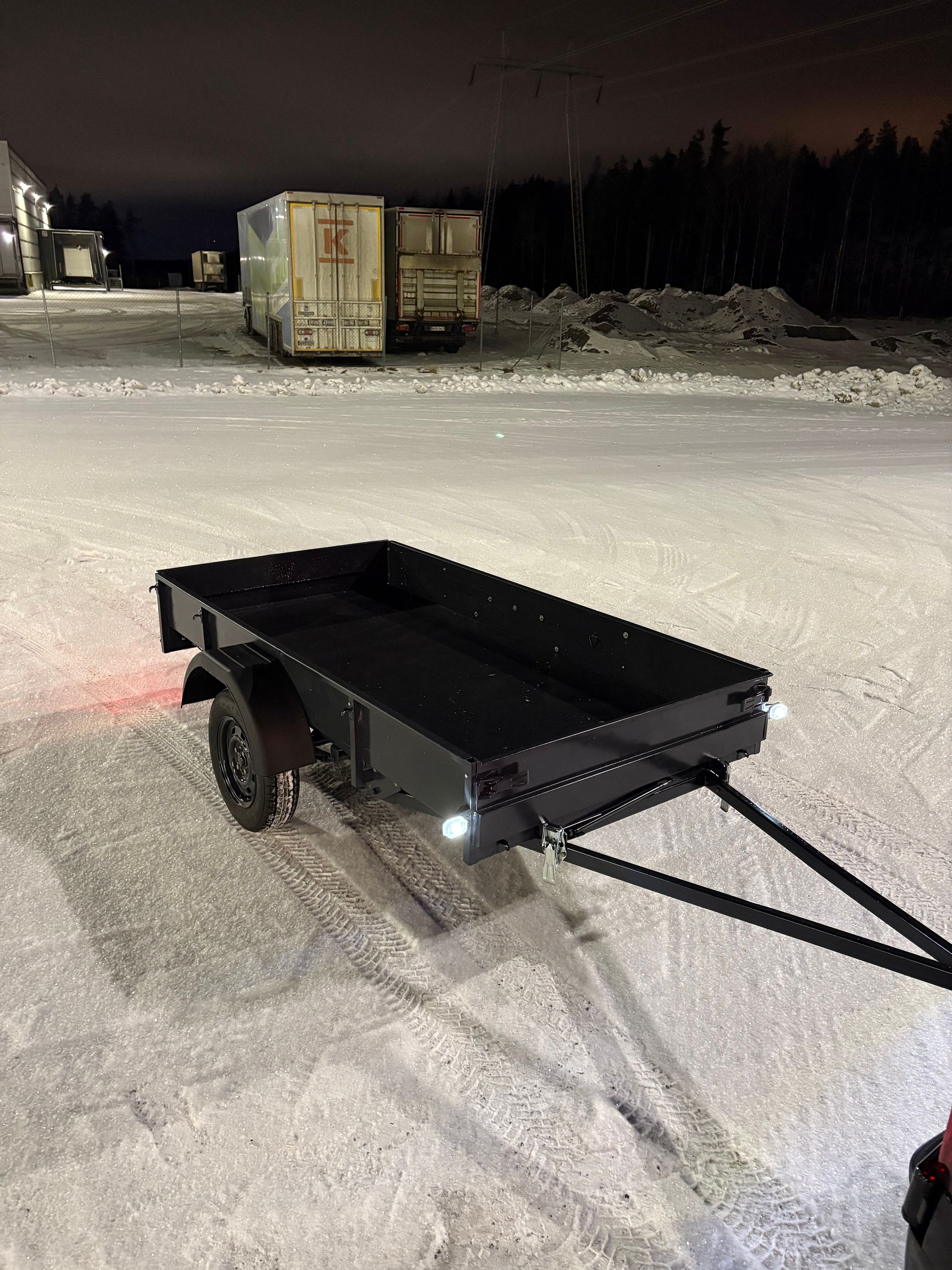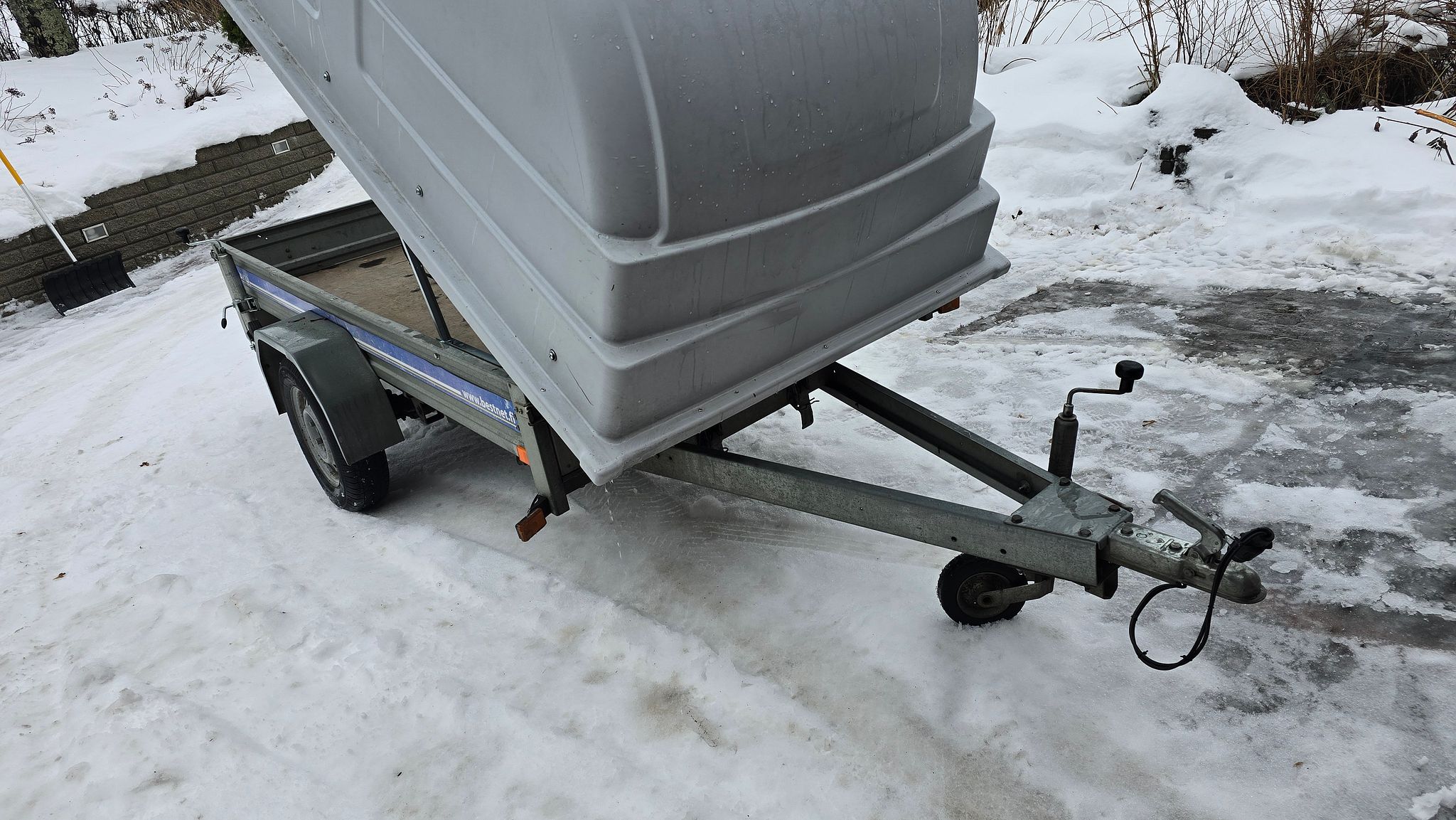 Siisti ja vähän käytetty kuomuperäkärry. Peräkärry oli katselmointihetkellä täynnä tavaraa ja lumikinosten takana, mutta tyhjennetään ennen luovutusta. Katso Traficom -liite.