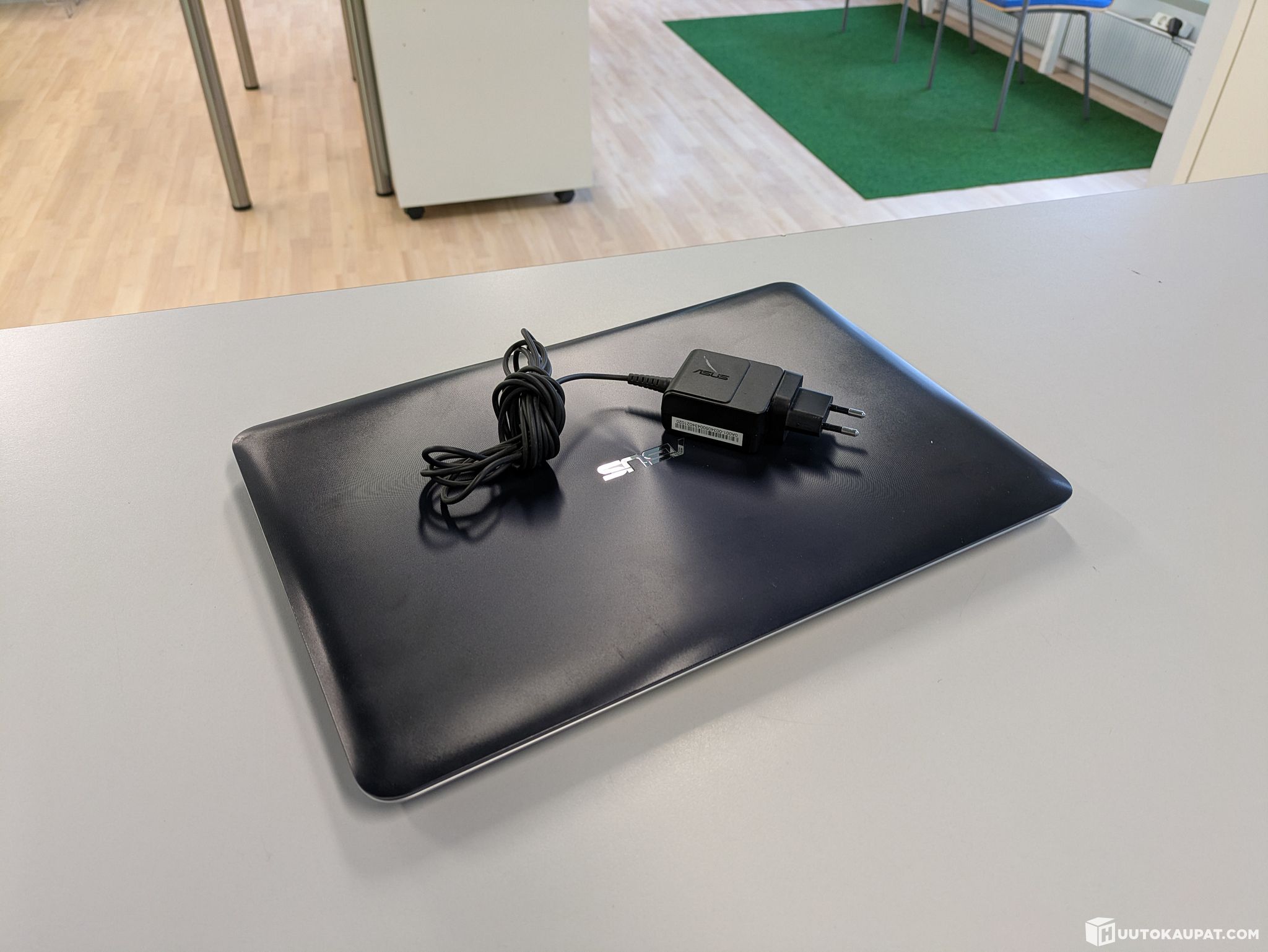 Alkuperäinen laturi (hieman alitehoinen, mutta on asiansa hoitanut. Suositellaan lataamaan koneen ollessa virrattomana)