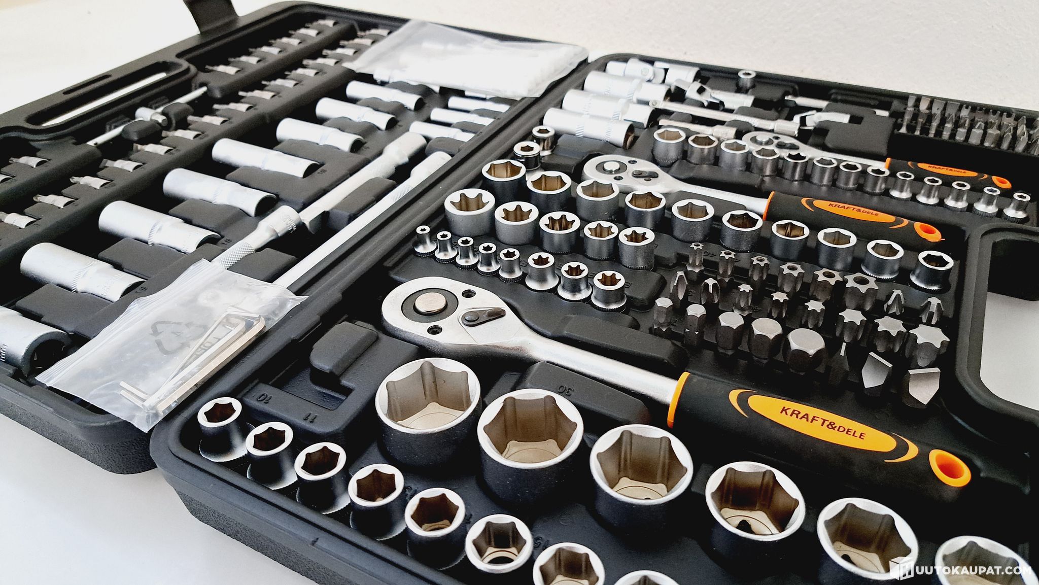 Kestävän muovista valmistetun salkun avulla voit pitää työkalusi järjestyksessä helposti kuljetettavassa muodossa.