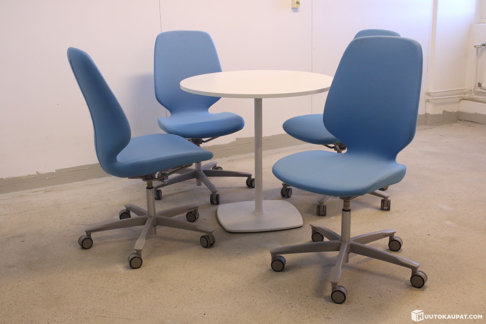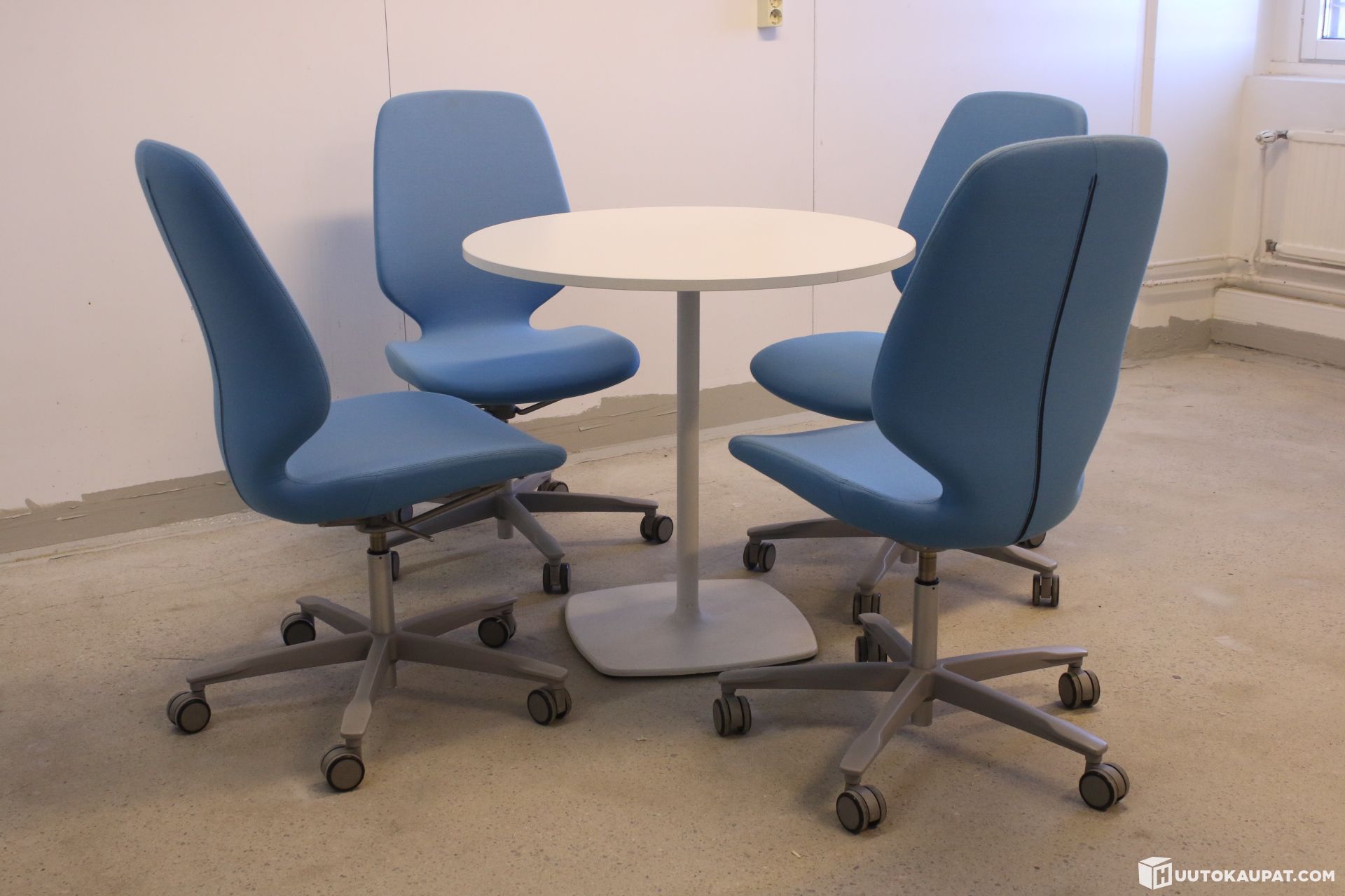 Erittäin tyylikäs setti ! Neljä Kinnarpsin siistiä Monroe tuolia ja Italialaisen Pedralin pyöreä pöytä. Tuoleissa korkeudensäätö.