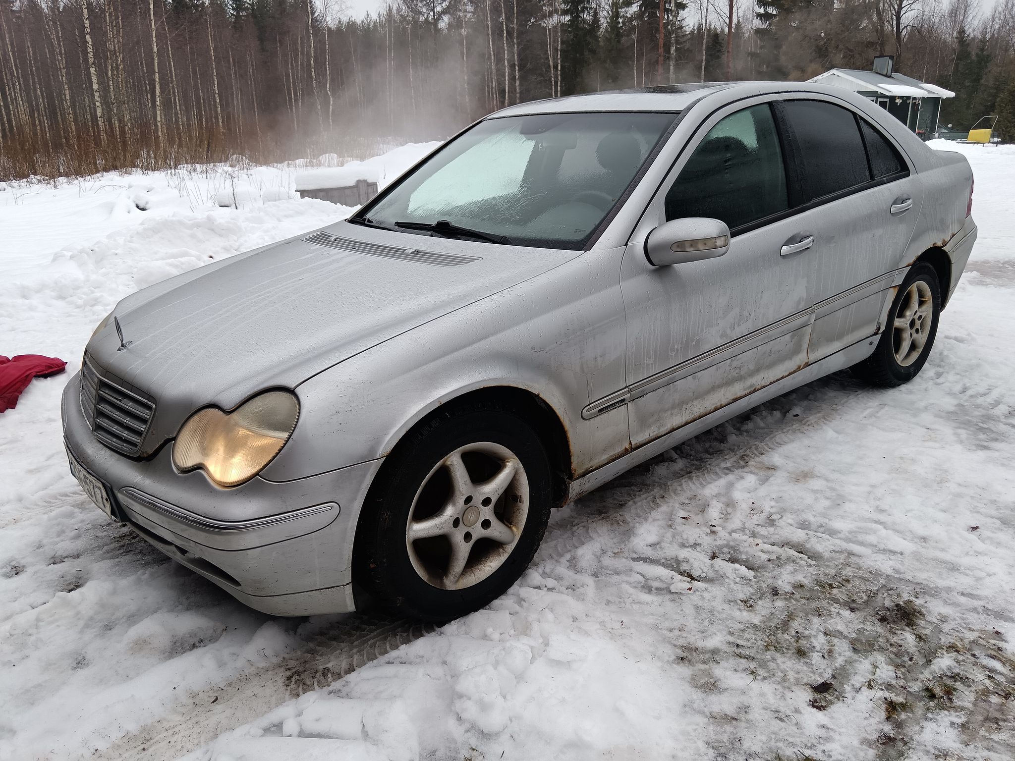 Hyväkuntoiset Nexenin "keski-euroopan kitkat" alla mersun 16 tuumaisilla orkkis vanteilla.
