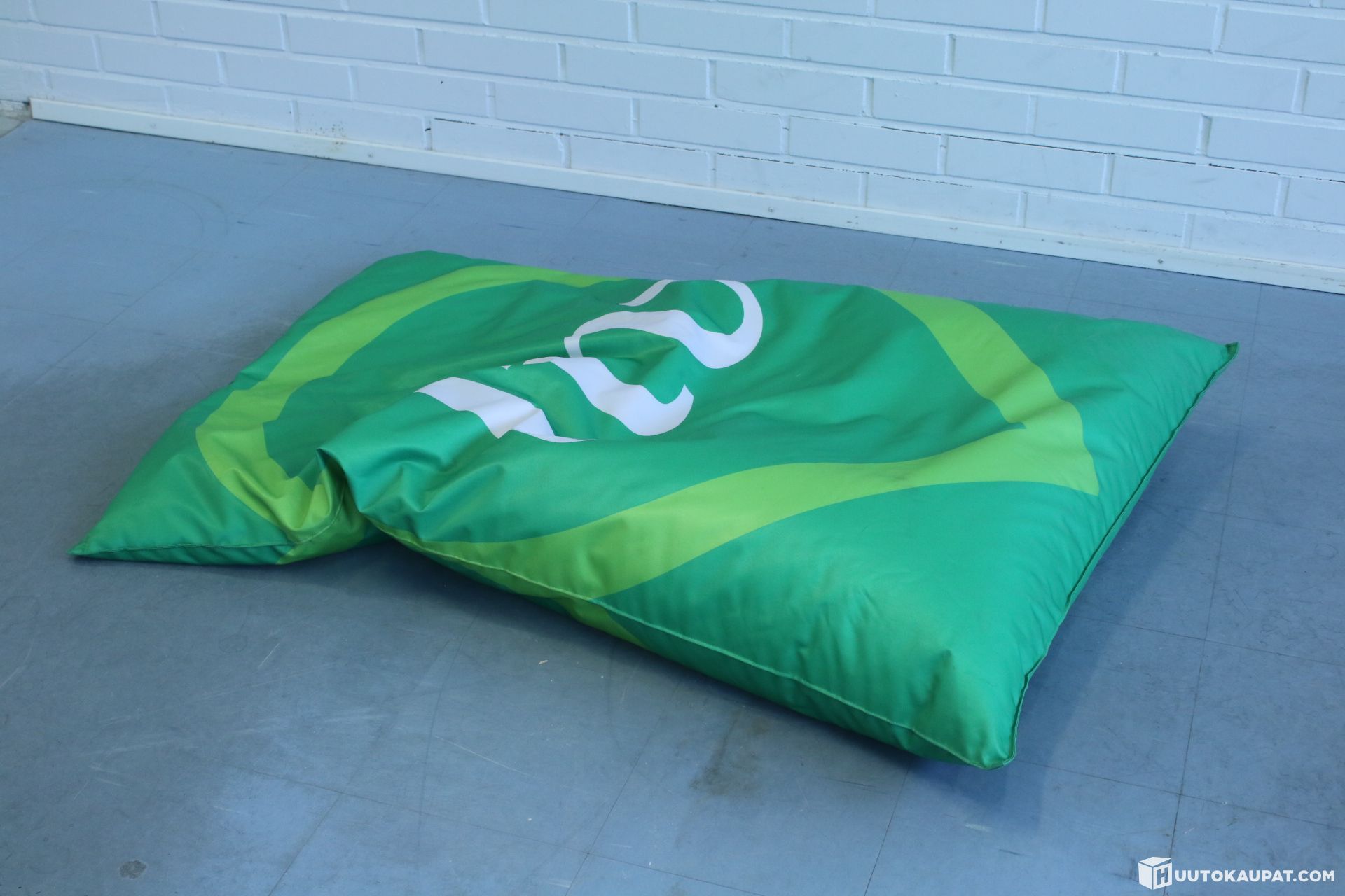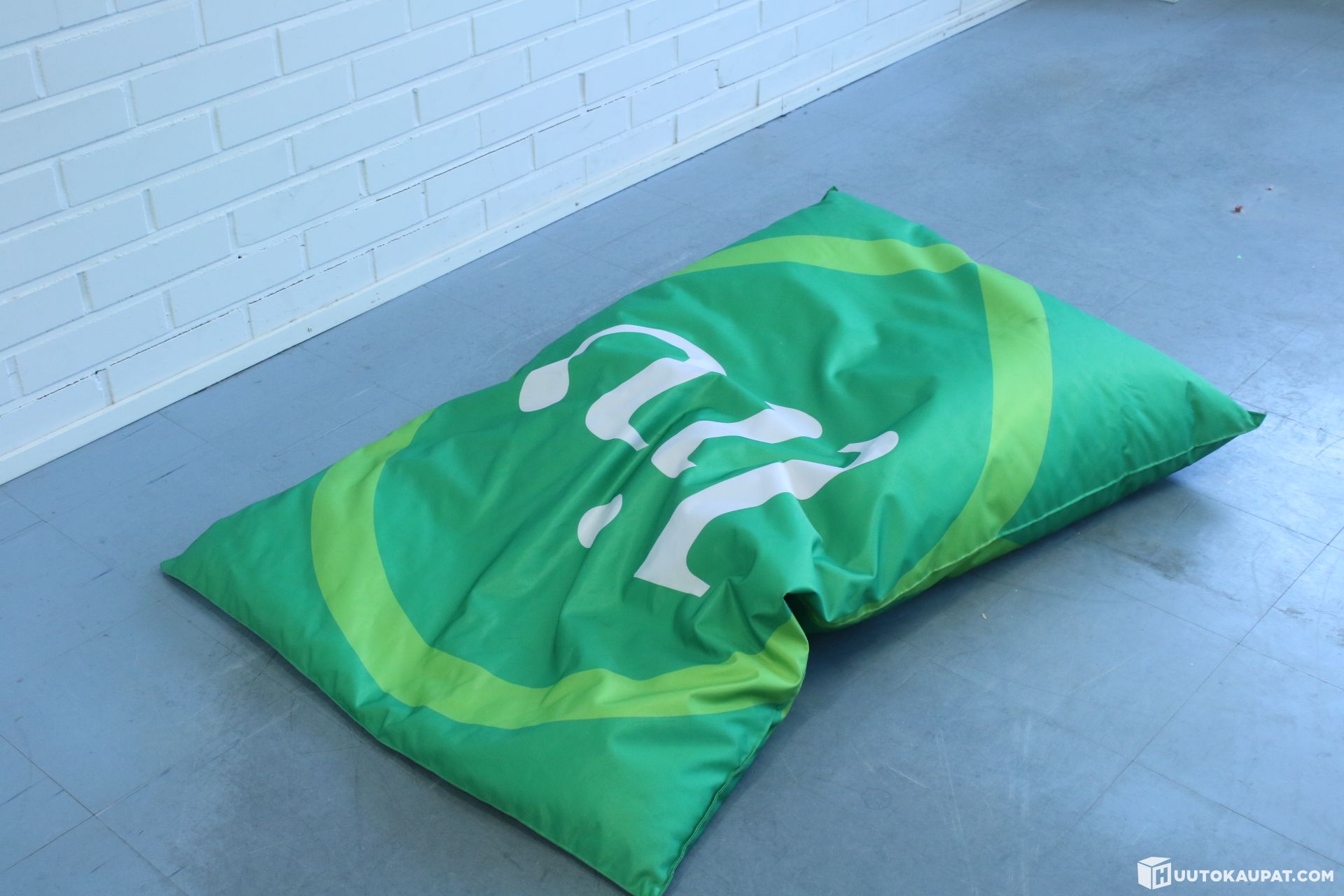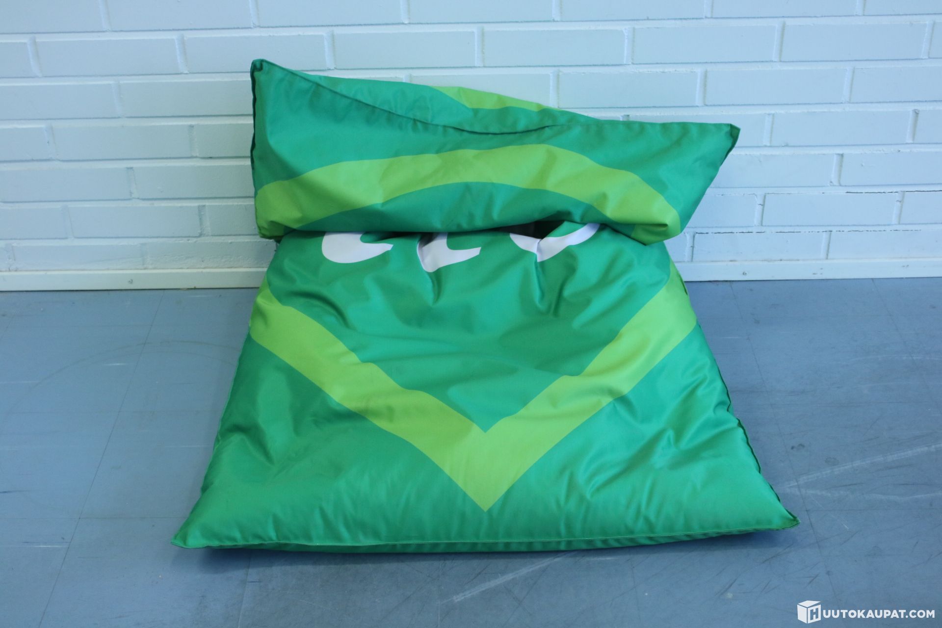Vihreä säkkituoli sisä- ja ulkokäyttöön.