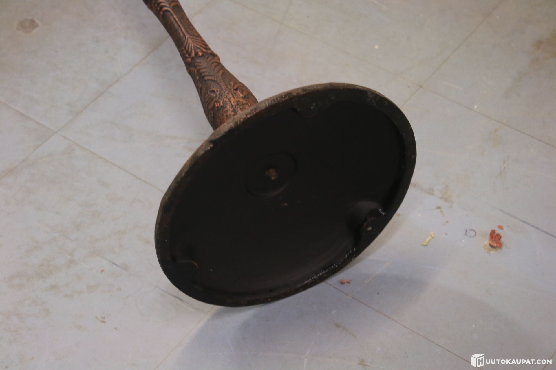 Vanha kirkon raudasta valmistettu kynttilänpideke. Kauniisti kuvioitu ja patinoitunut. Arviolta noin 100 vuotta vanha.