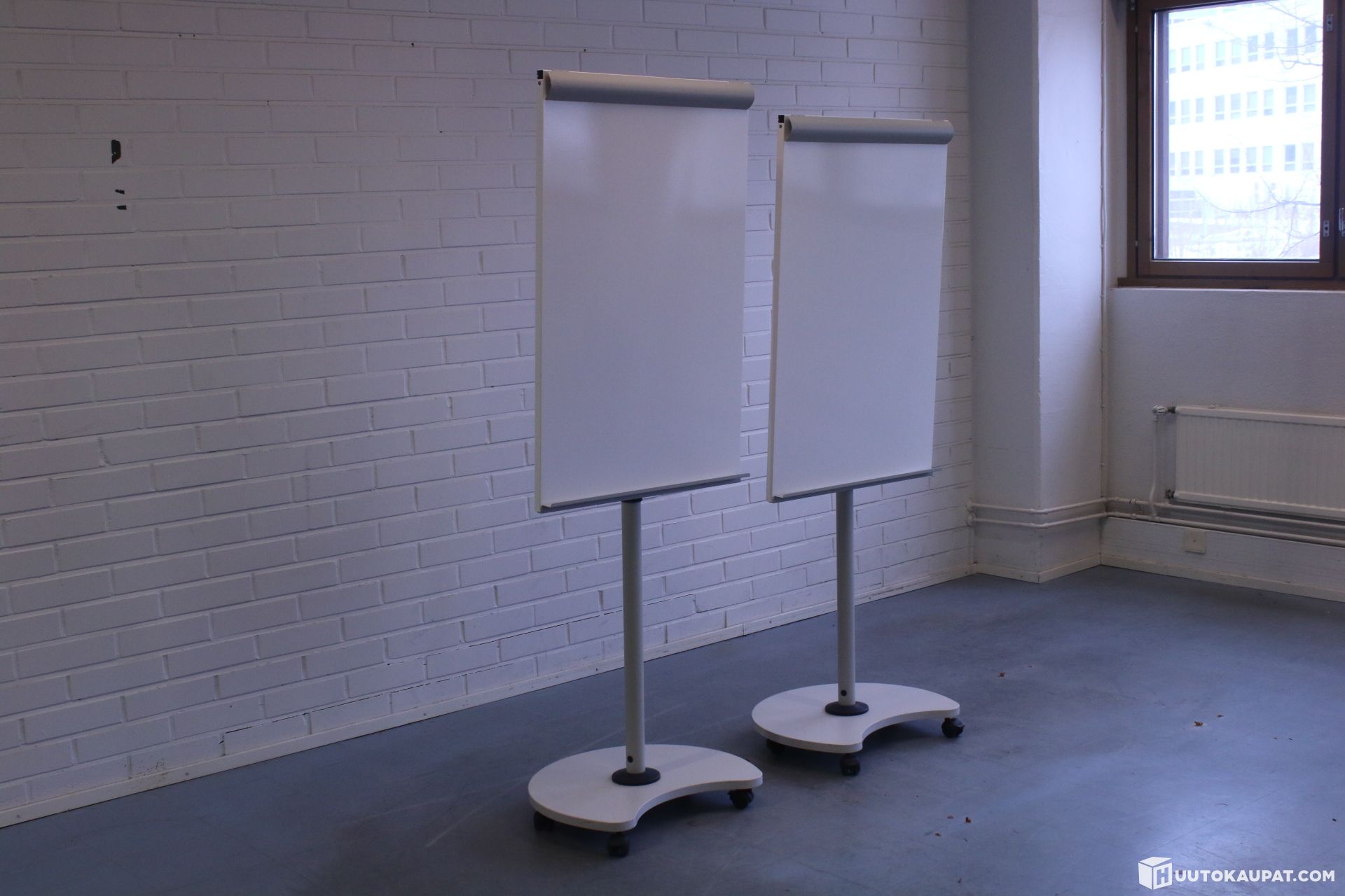 Kaksi tussitaulua lukittavilla renkailla. Korkeus säädettävä taulu.