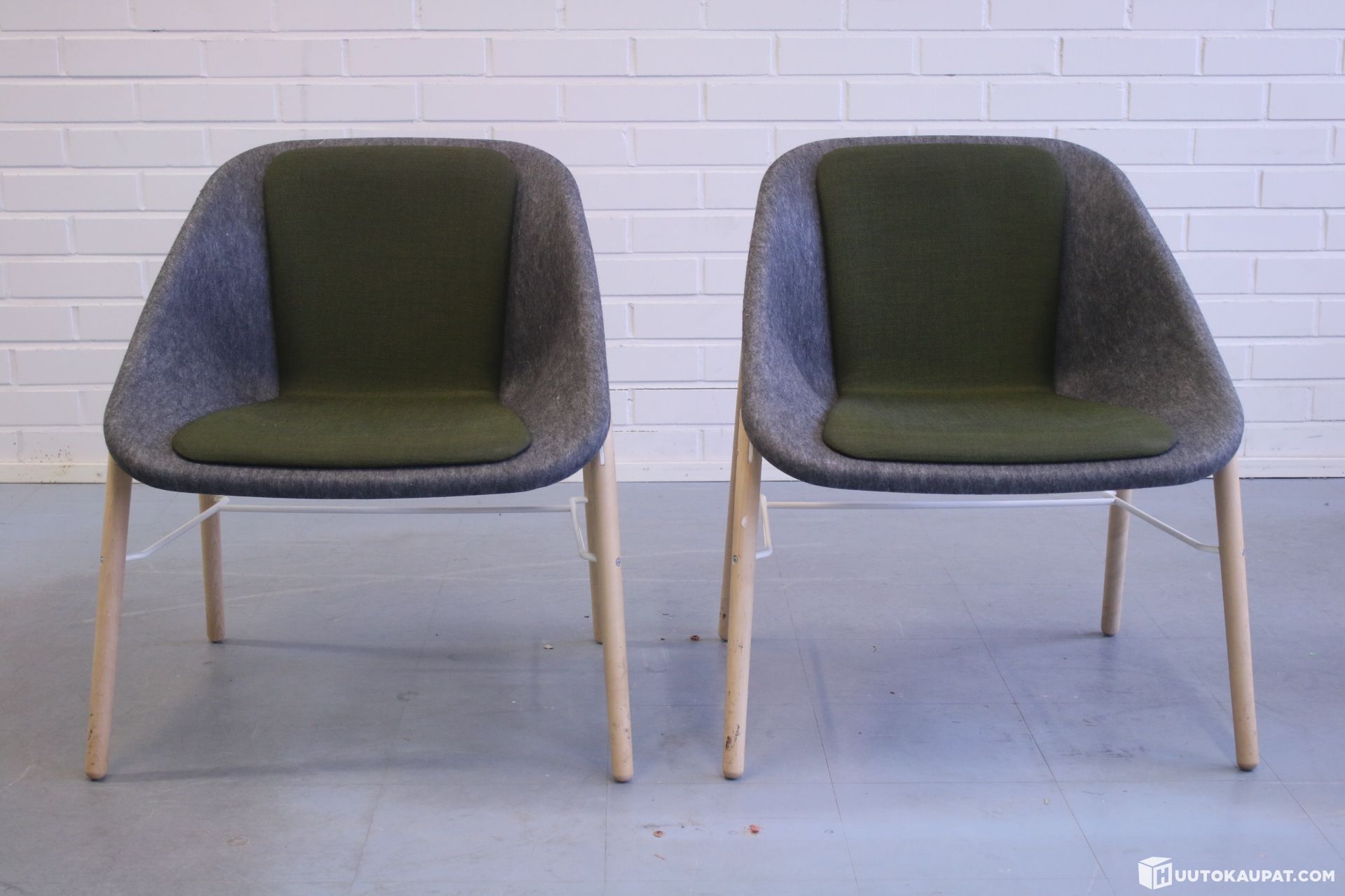 Kaksi Innon Kola Light-tuolia puisilla jaloilla. Suunnittelija Mikko Laakkonen.