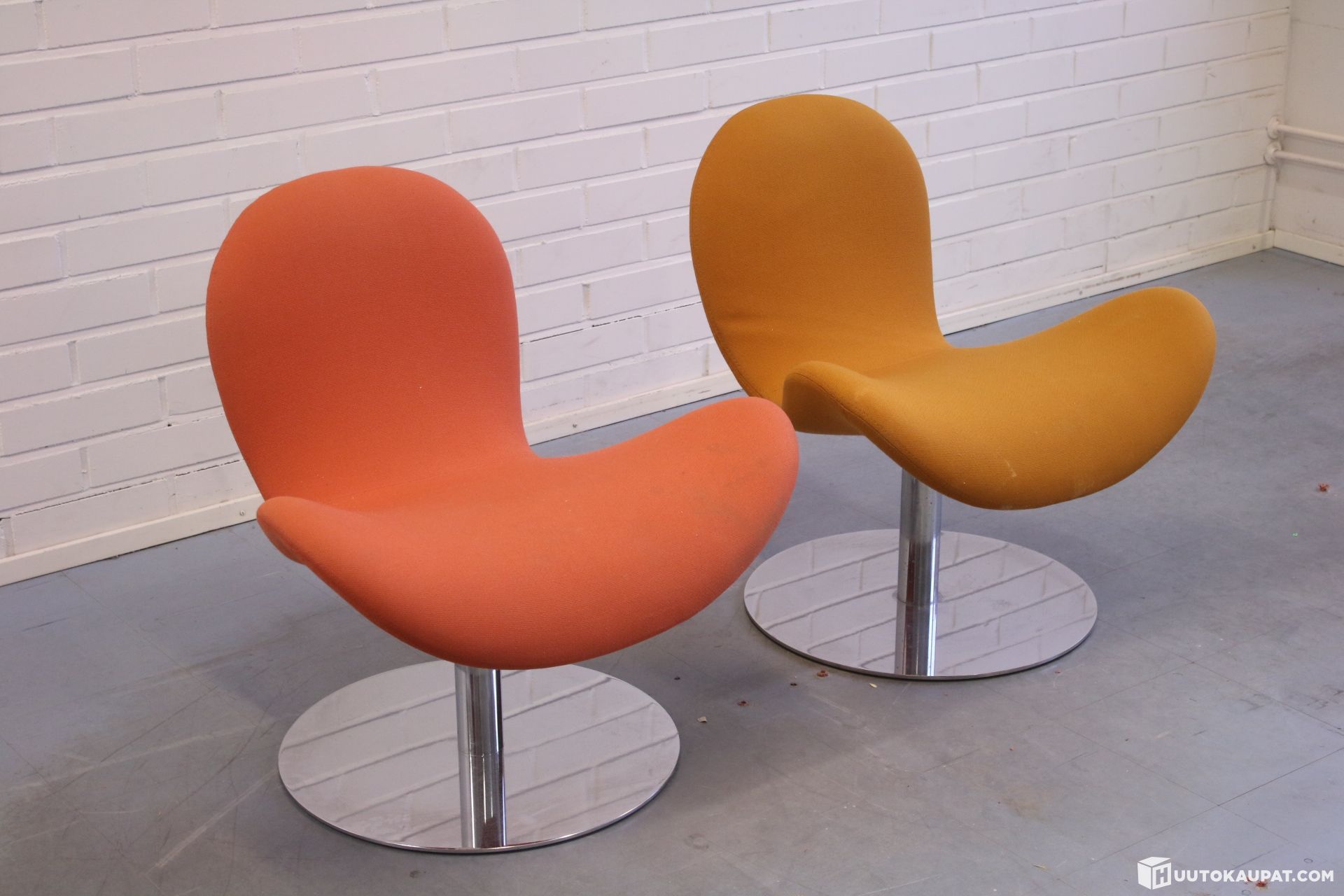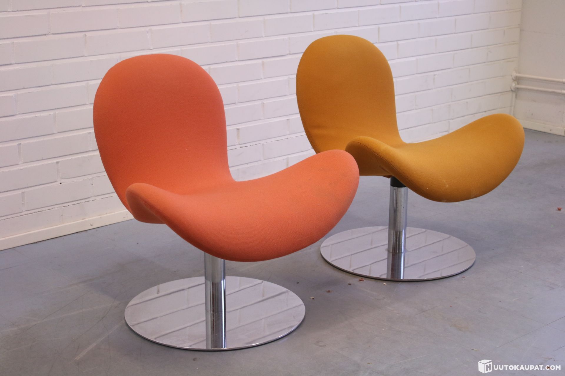Tyylikäs Martelan Fly Me-nojatuolipari kromisella laippajalalla. Tuolissa on palautusmekanismi.