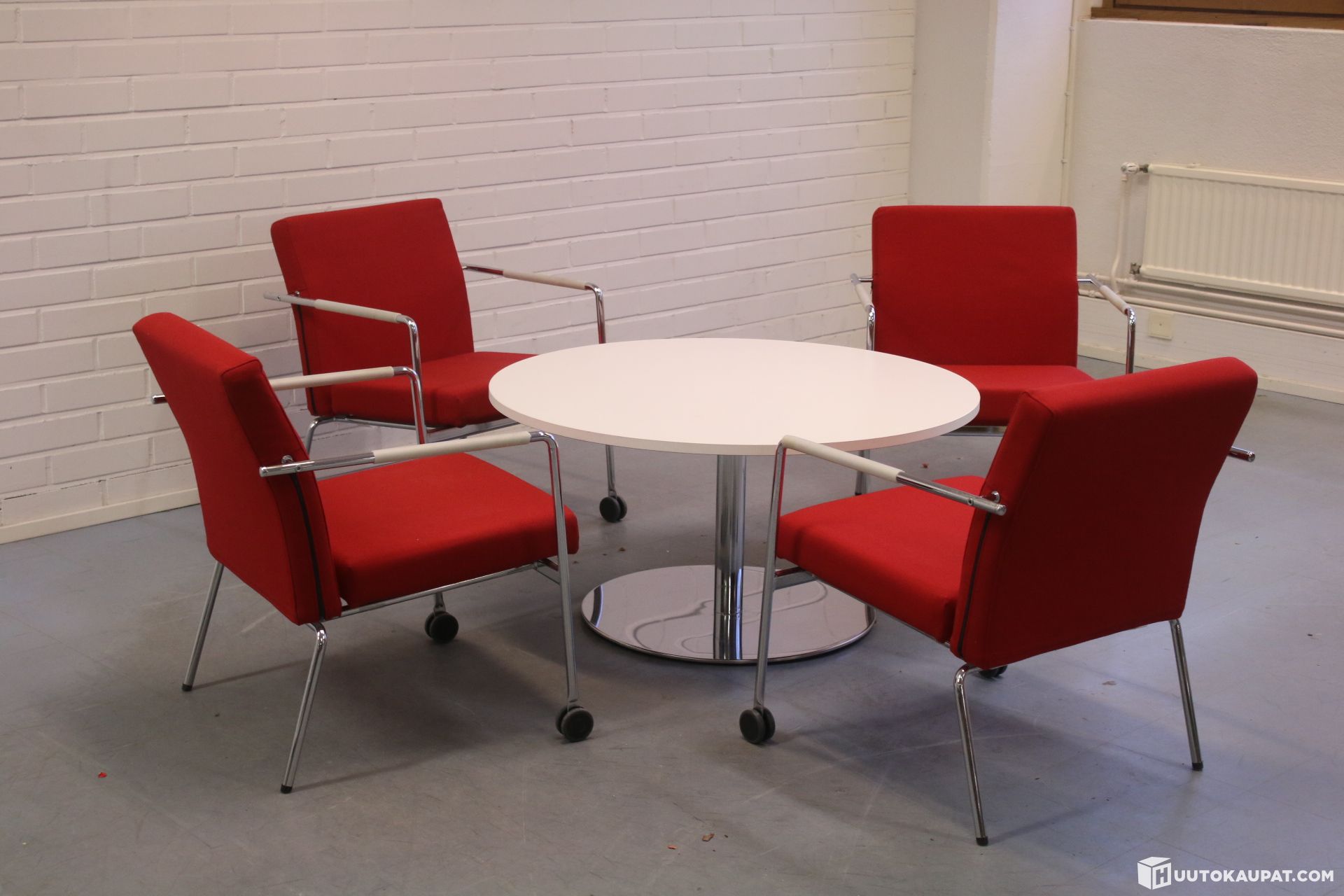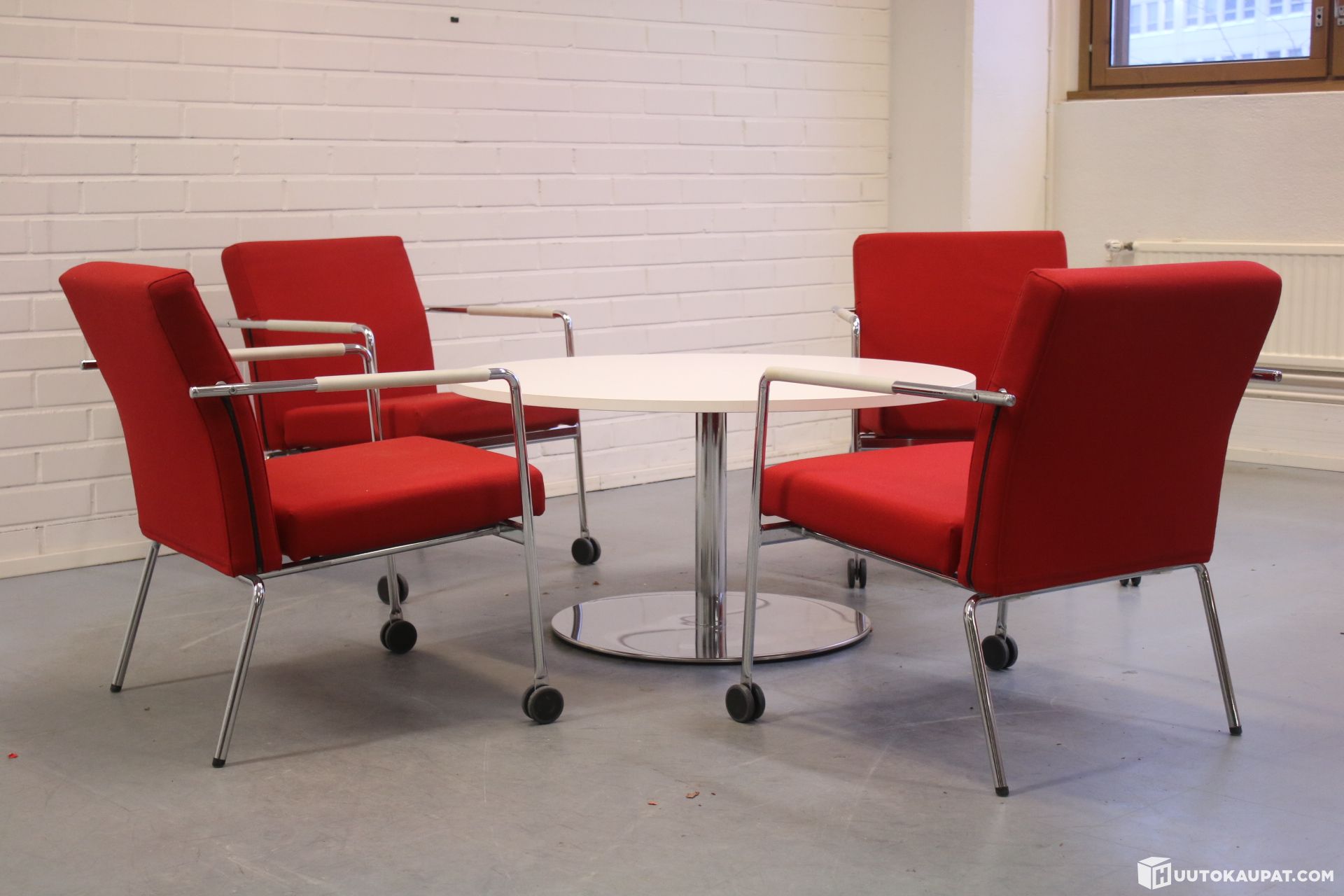 Laadukas setti hyvä kuntoisilla Martelan kalusteilla. Sisältää neljä kappaletta Form-nojatuoleja sekä Spot-sohvapöydän.