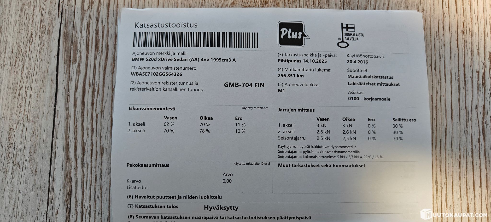 Katsastettu lokakuussa 2025 ,256851km kohdalla, ei mitään mainittavaa.