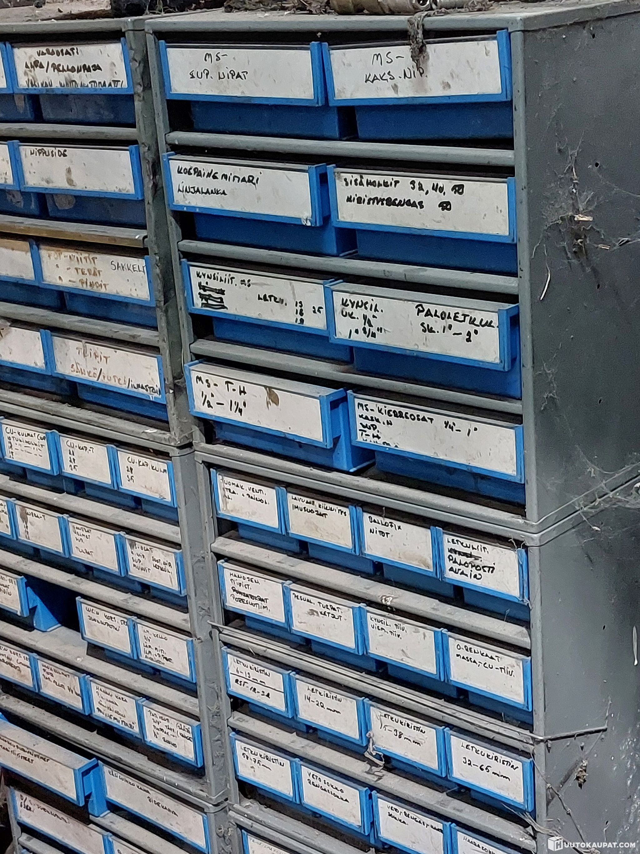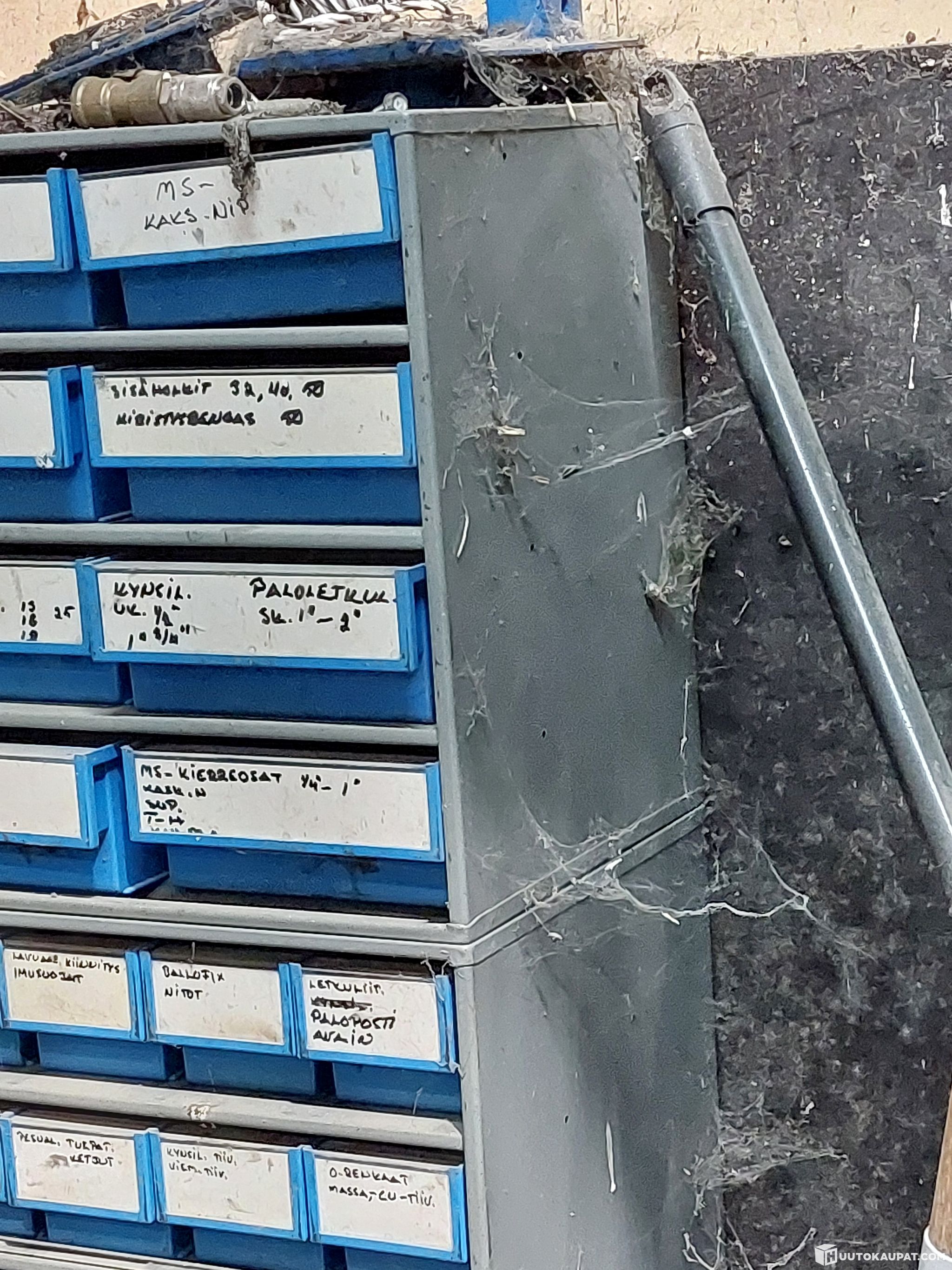Yksi laatikko puuttuu. Likainen ja käytön jälkiä.