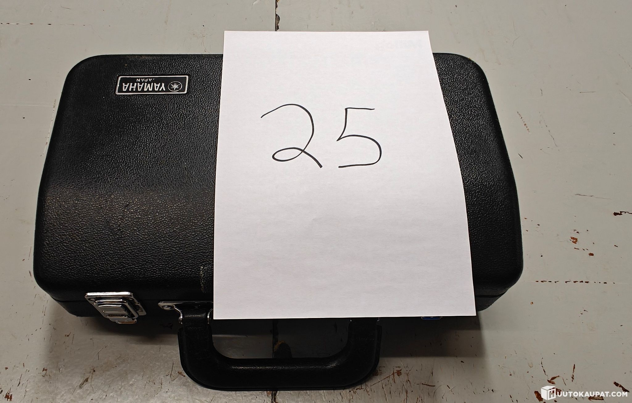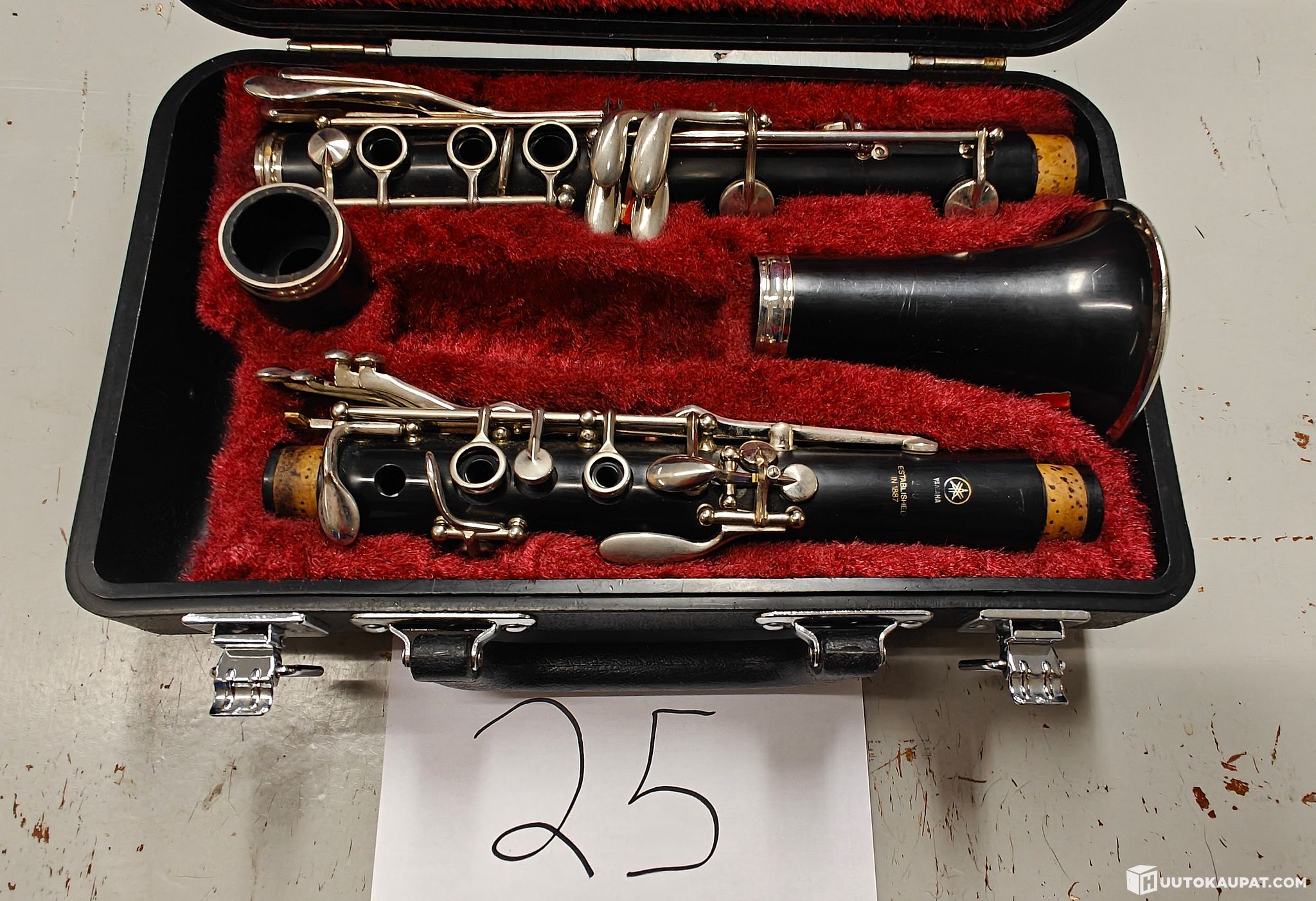 Puhallin soitin (klarinetti?) kuljetussalkussa. (kohde 24)