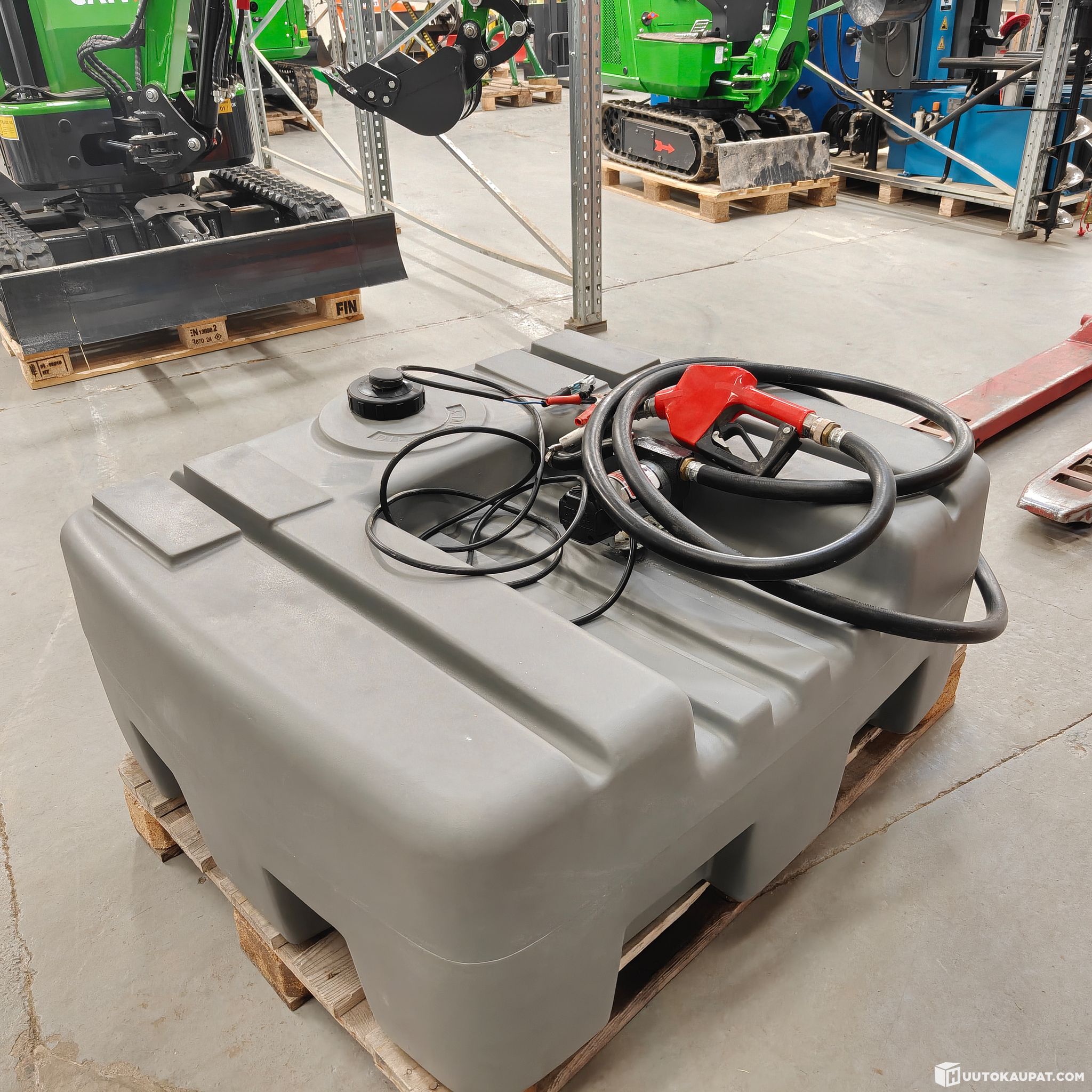 Uudella säiliöllä mutta käytetyllä pumpulla varustettu , Selectan diesel ja polttoöljylle suunniteltu kompakti polttoainesäiliö on helppo kuljettaa ja varastoida maltillisen kokonsa ansiosta. Valmistettu kestävästä, UV-suojatusta ja pinnoitetusta polyetyleenistä. 12V sähkötoiminen pumppu 40 litran tuotolla per minuutti. Automaattisella pistoolilla varustettu polttoaineletku.