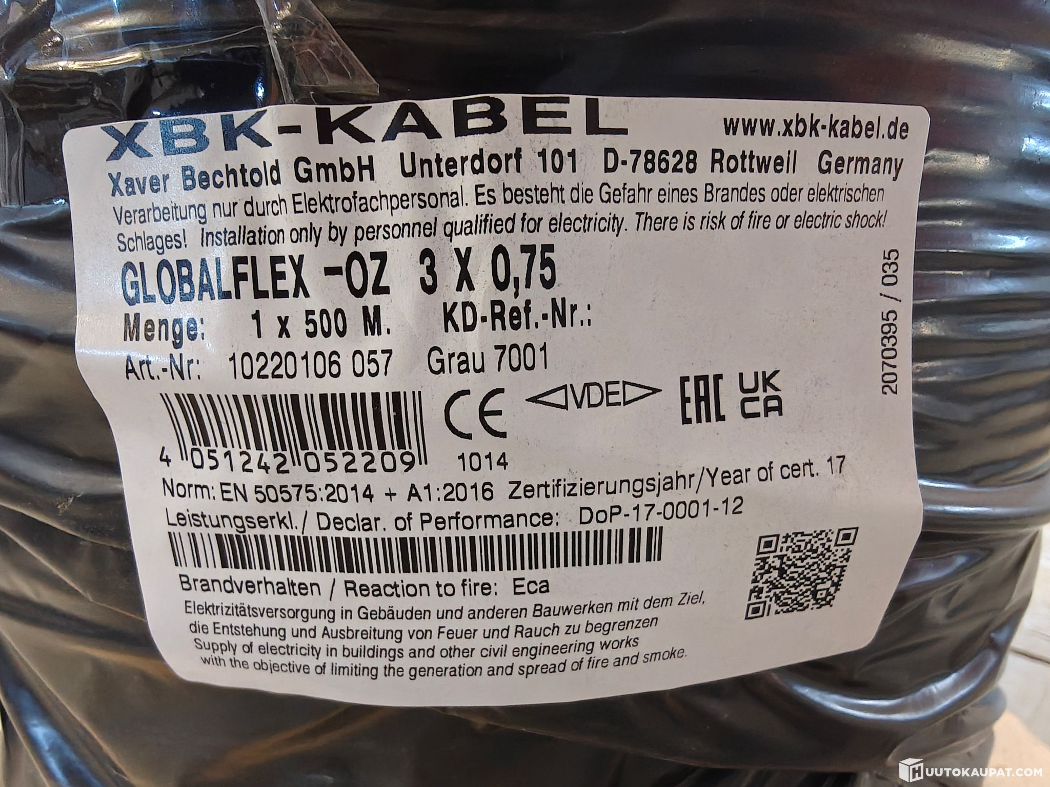 Myydään XBK-KABEL GLOBALFLEX-OZ 3×0,75 -sähkökaapelia täysi kela.
